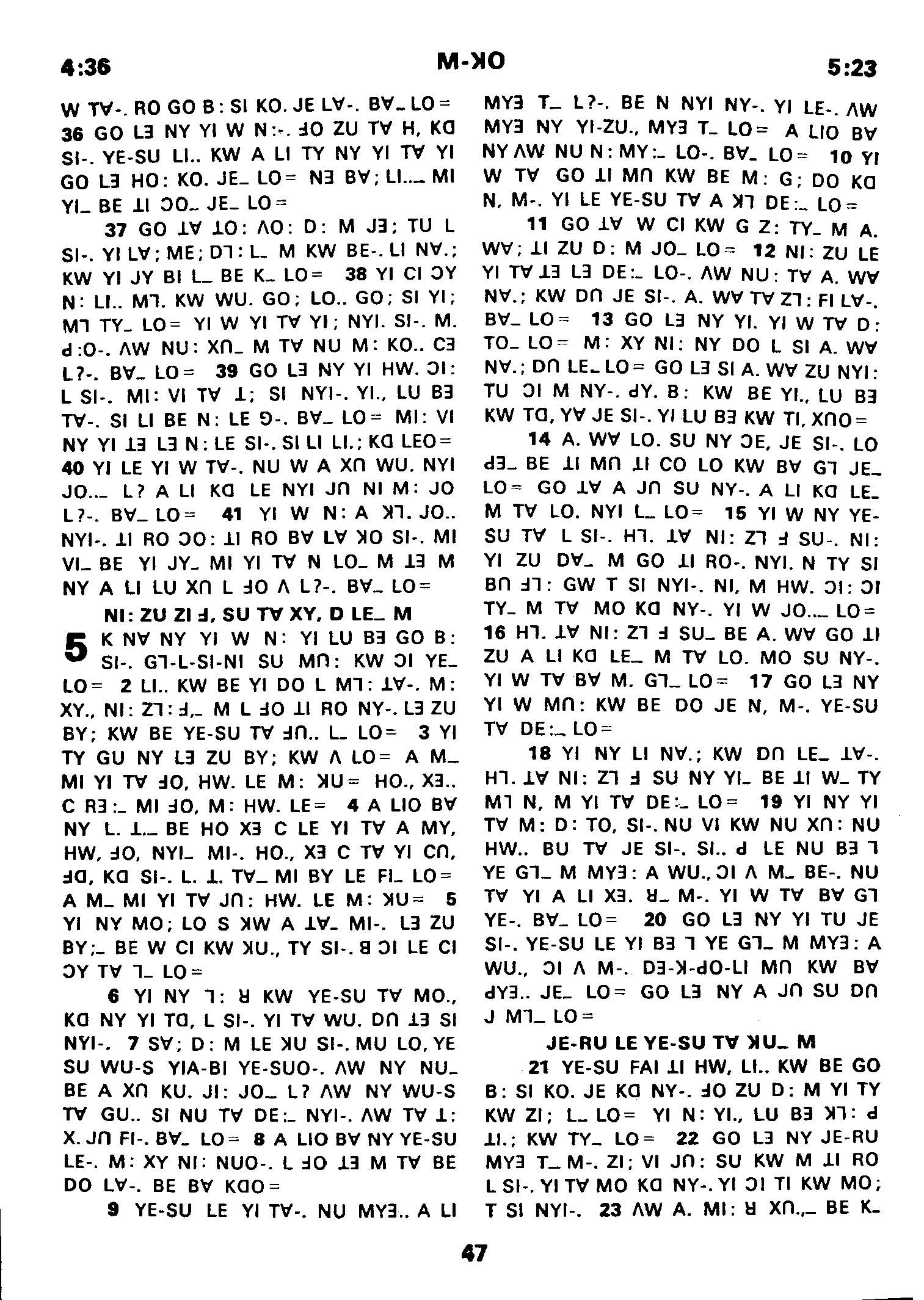 1980年傈僳语圣经全书 马可福音 4 章 36 节到 5 章 23 节