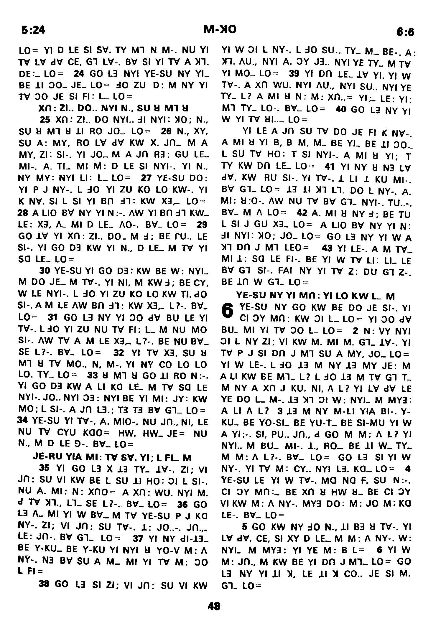 1980年傈僳语圣经全书 马可福音 5 章 24 节到 6 章 6 节