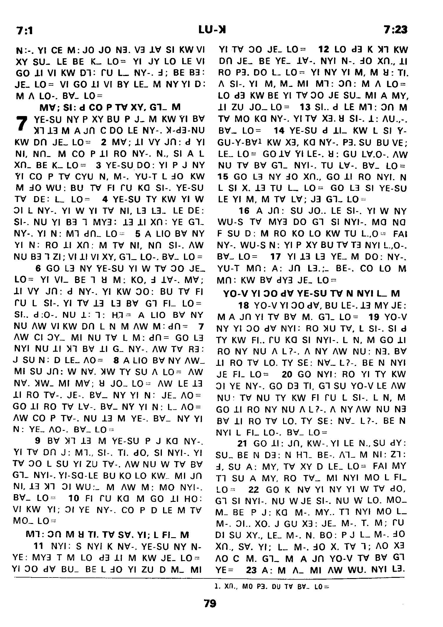 1980年傈僳语圣经全书 路加福音 7 章 1 节到 7 章 23 节