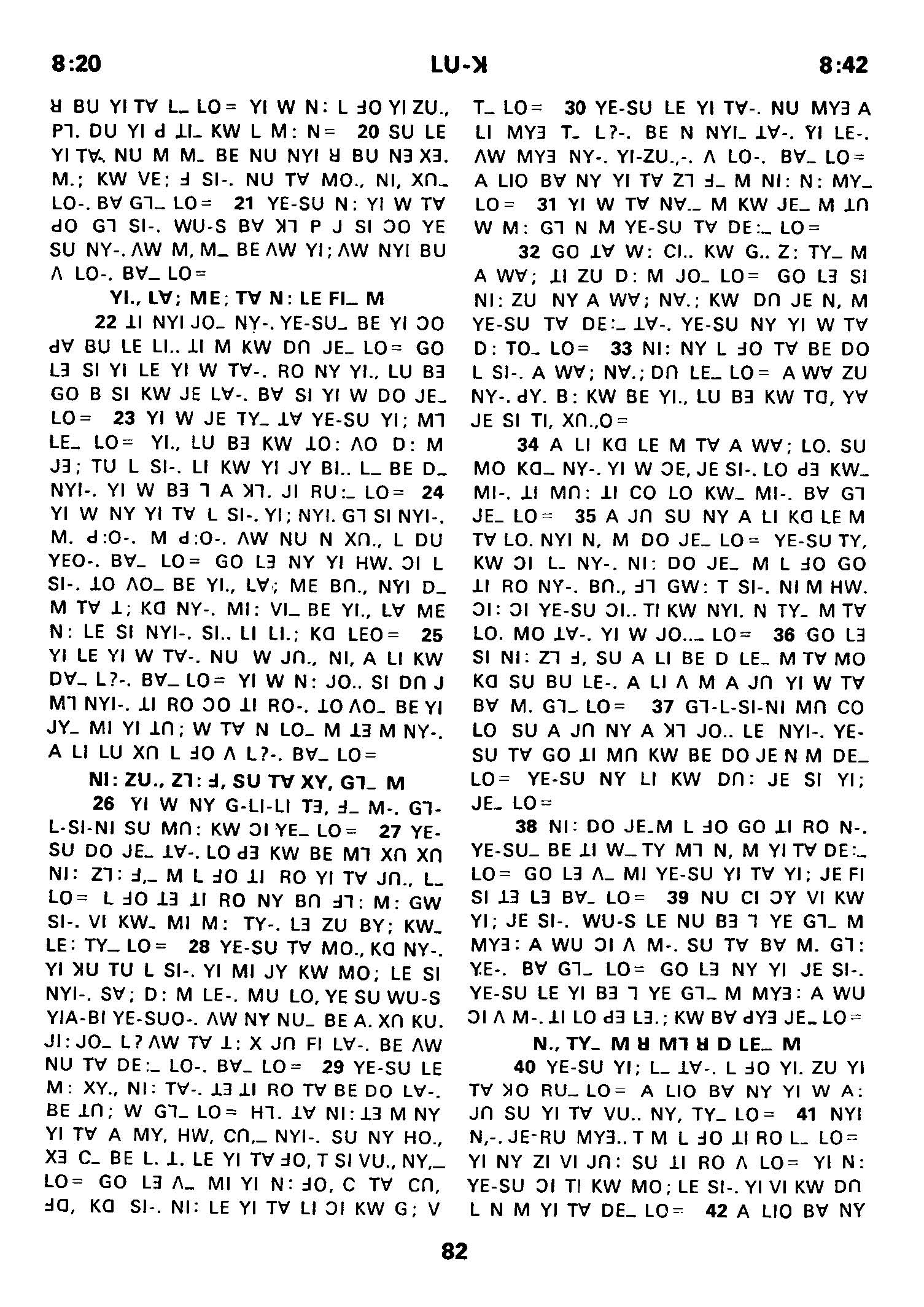 1980年傈僳语圣经全书 路加福音 8 章 20 节到 8 章 42 节