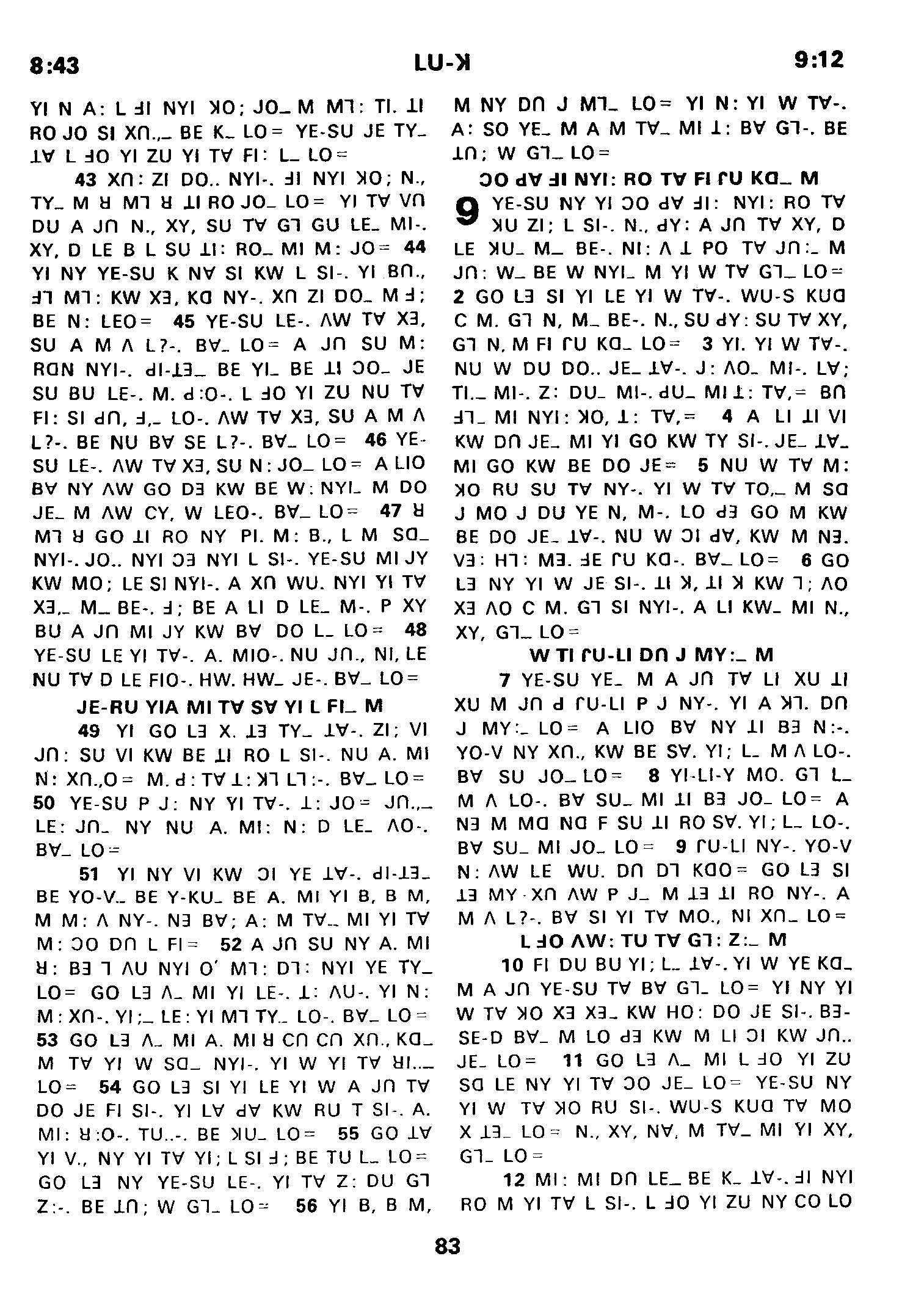 1980年傈僳语圣经全书 路加福音 8 章 43 节到 9 章 12 节