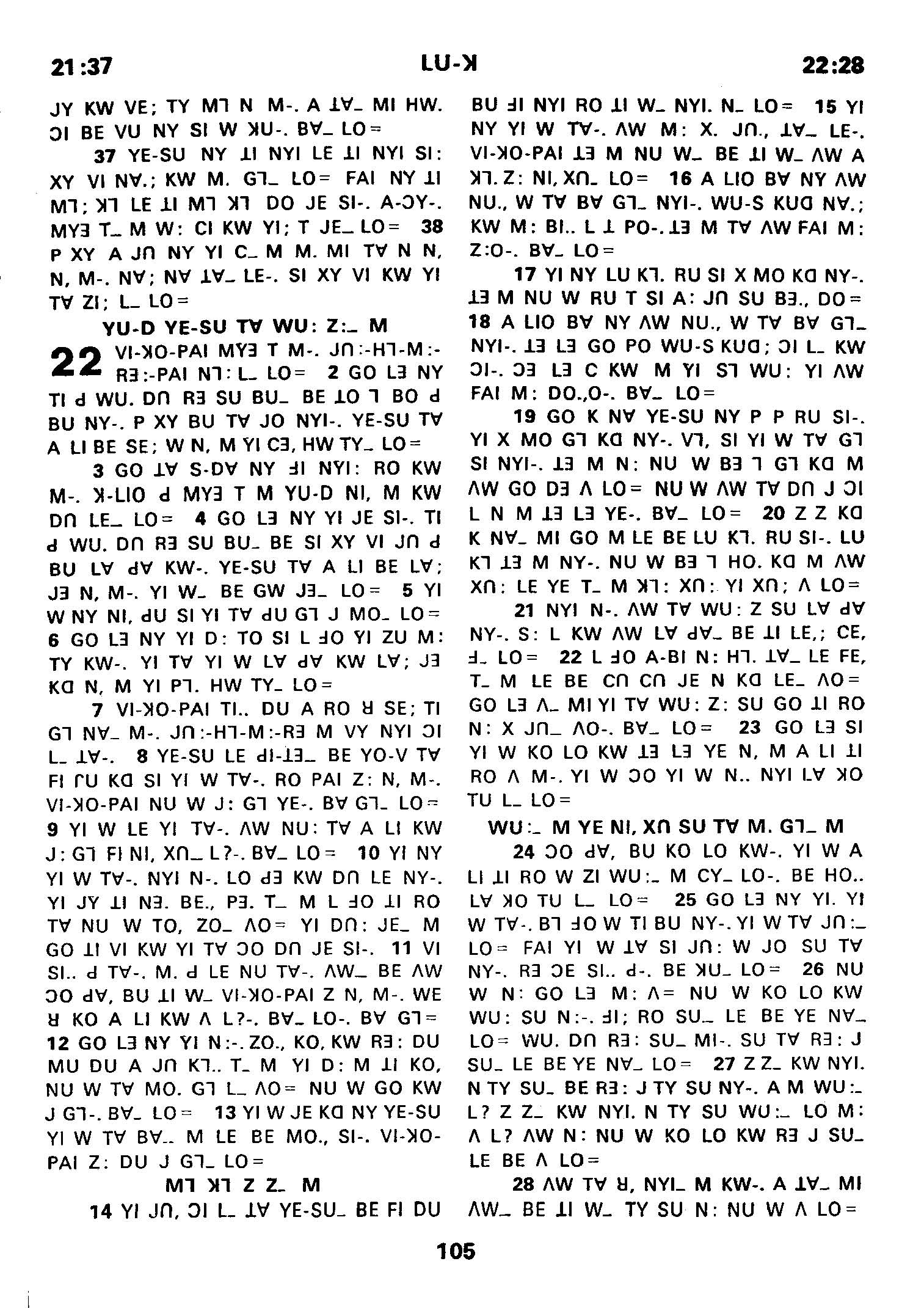 1980年傈僳语圣经全书 路加福音 21 章 37 节到 22 章 28 节