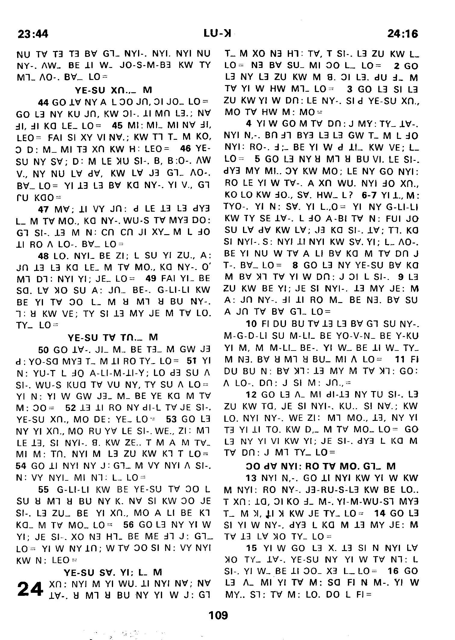 1980年傈僳语圣经全书 路加福音 23 章 44 节到 24 章 16 节