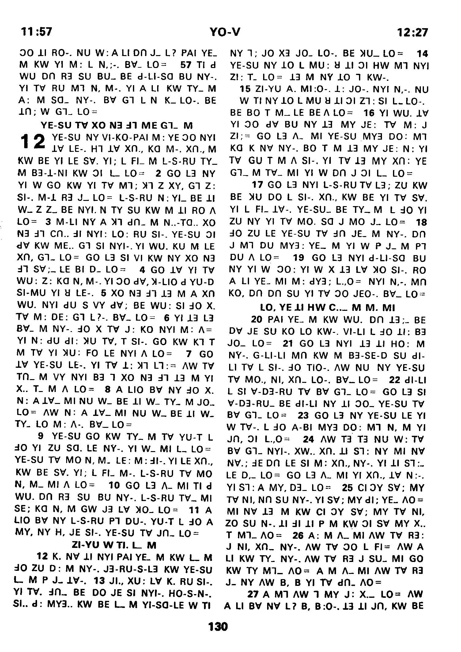 1980年傈僳语圣经全书 约翰福音 11 章 57 节到 12 章 27 节