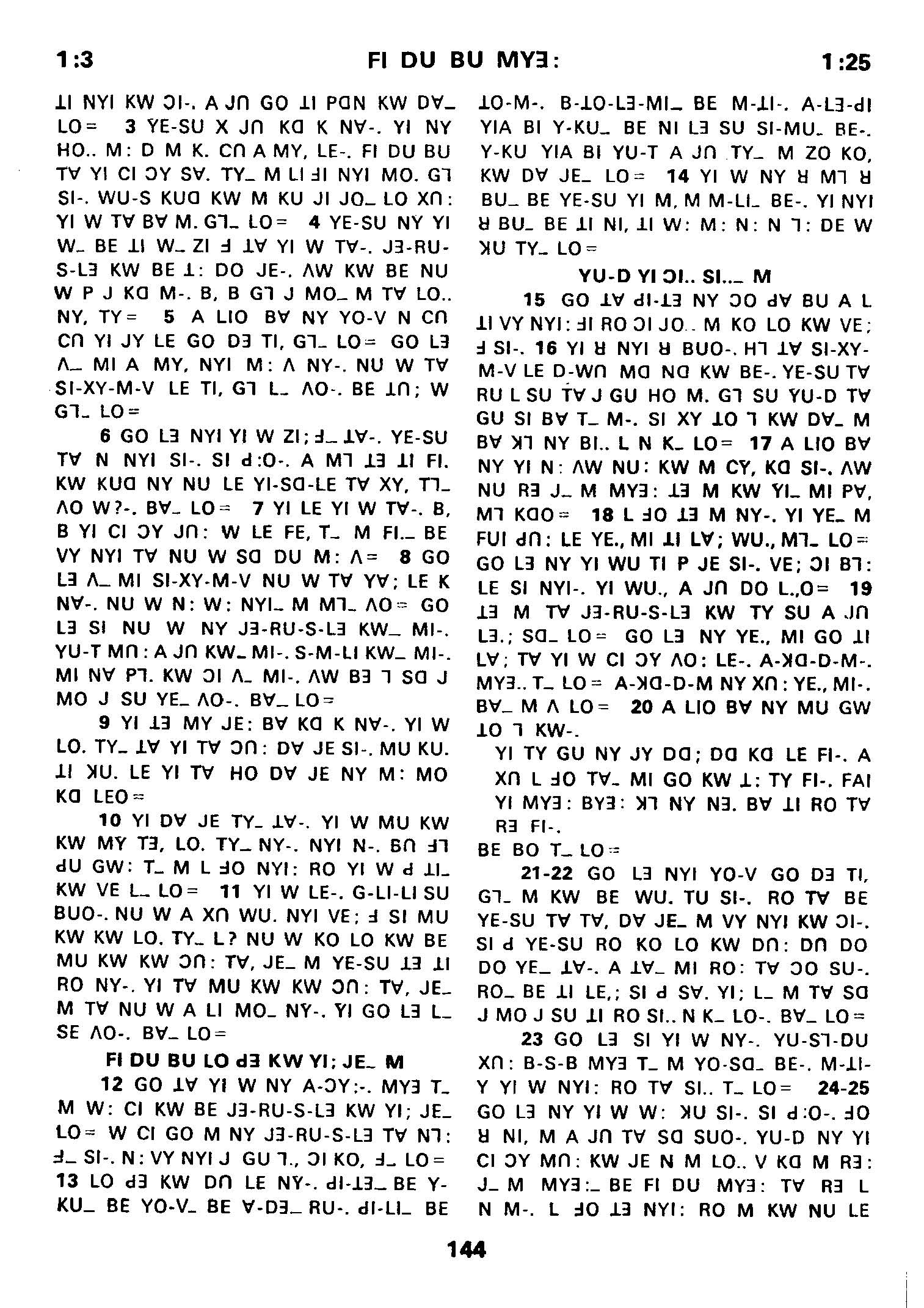 1980年傈僳语圣经全书 使徒行传 1 章 3 节到 1 章 25 节
