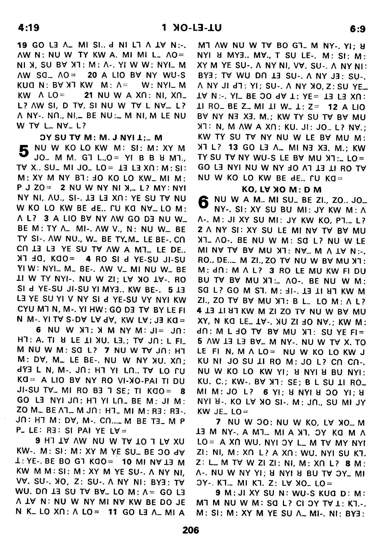 1980年傈僳语圣经全书 哥林多前书 4 章 19 节到 6 章 9 节