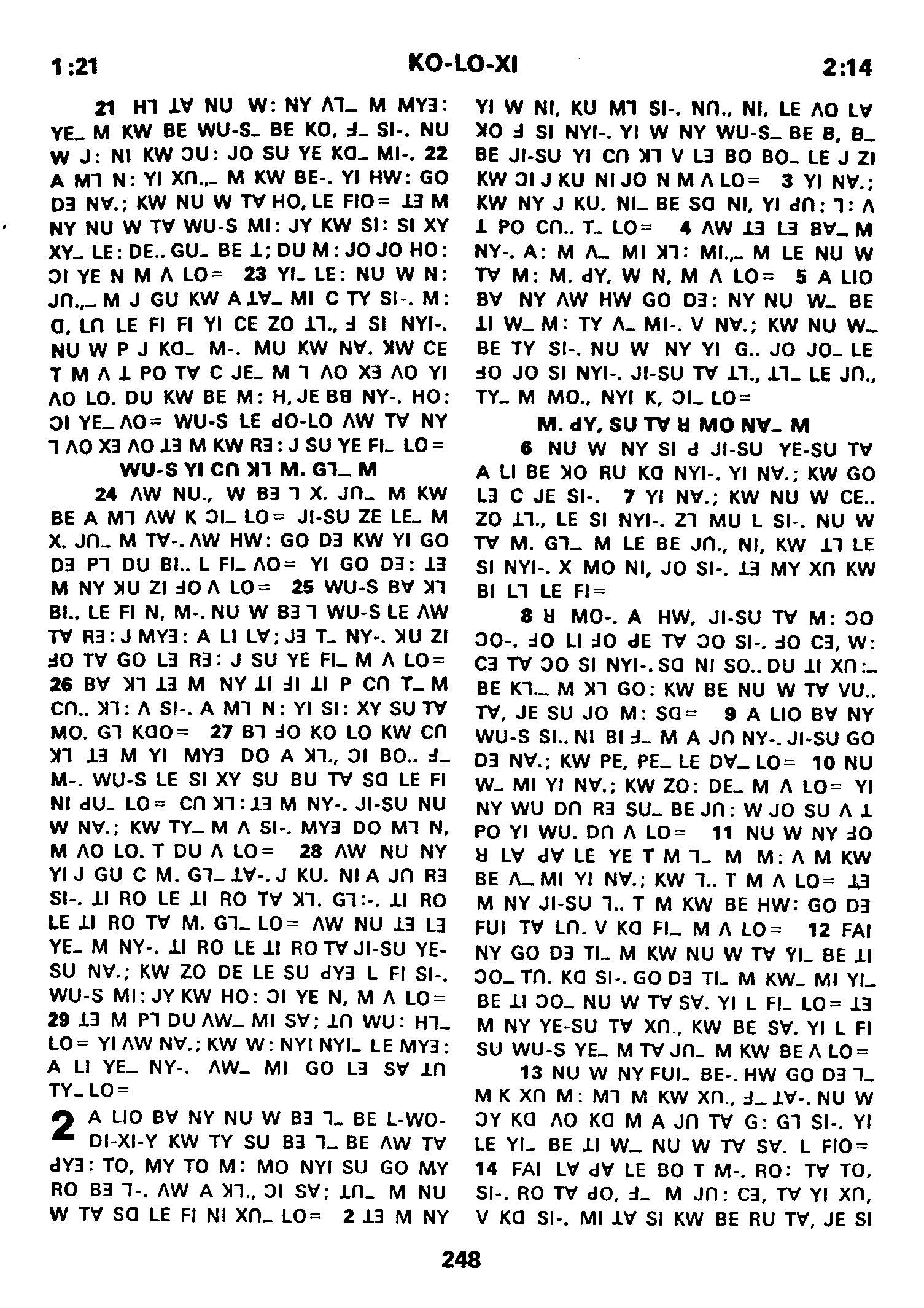 1980年傈僳语圣经全书 歌罗西书 1 章 21 节到 2 章 14 节