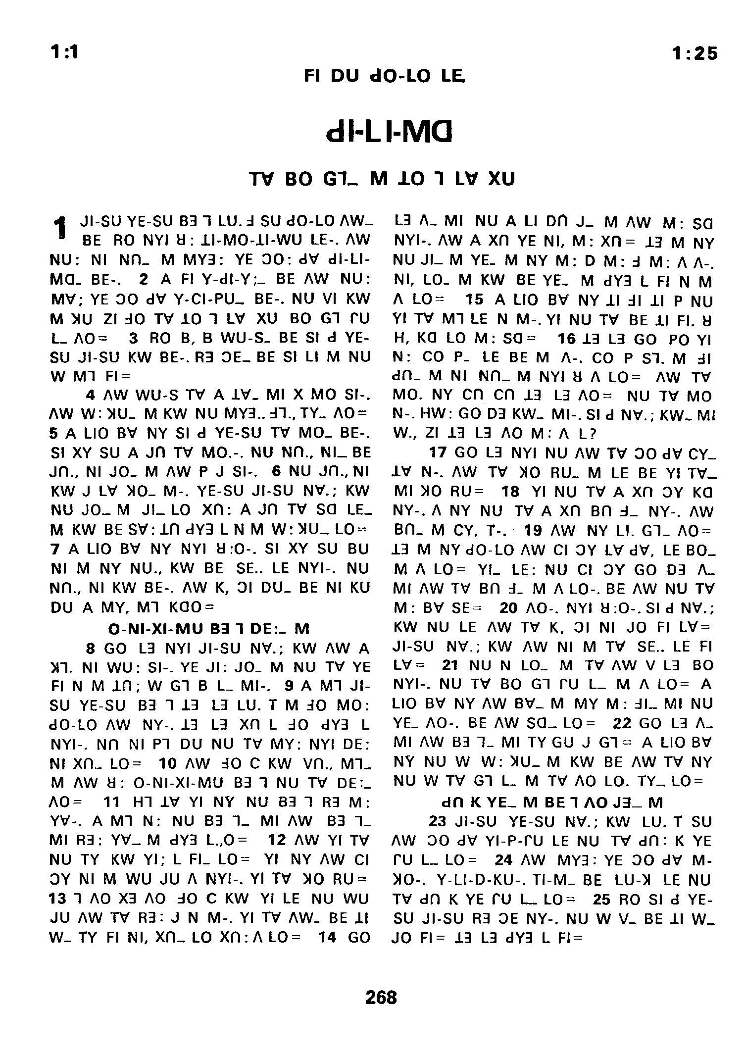 1980年傈僳语圣经全书 腓利门书 1 章 1 节到 1 章 25 节