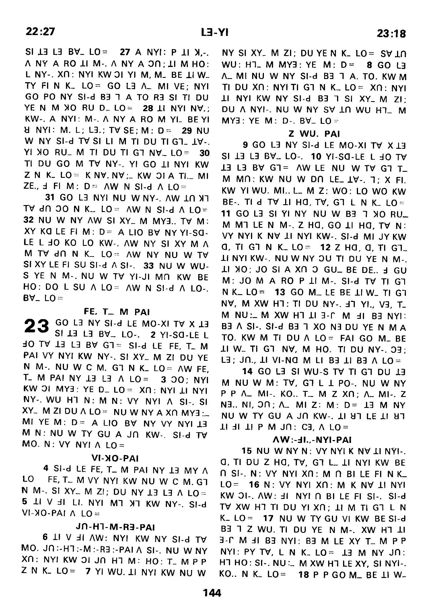 1980年傈僳语圣经全书 利未记 22 章 27 节到 23 章 18 节