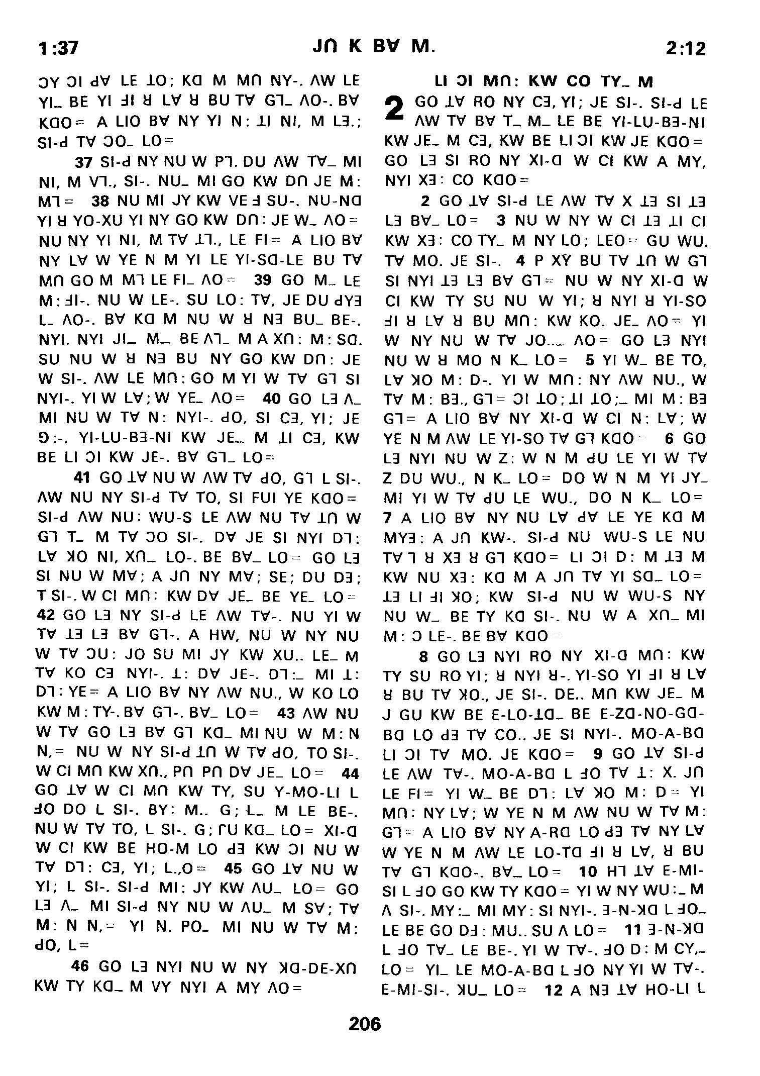 1980年傈僳语圣经全书 申命记 1 章 37 节到 2 章 12 节