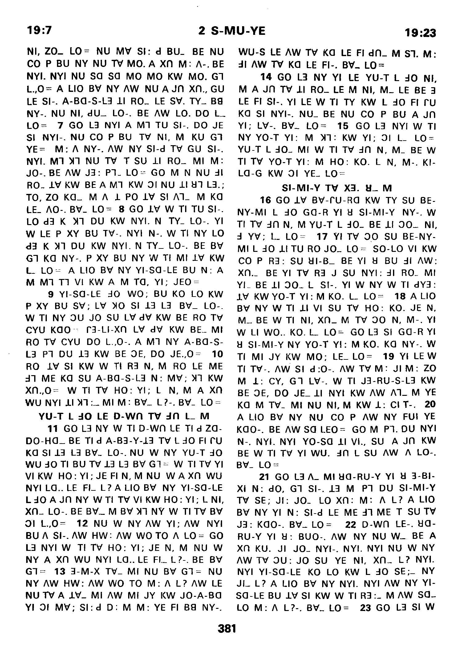 1980年傈僳语圣经全书 撒母耳记下 19 章 7 节到 19 章 23 节