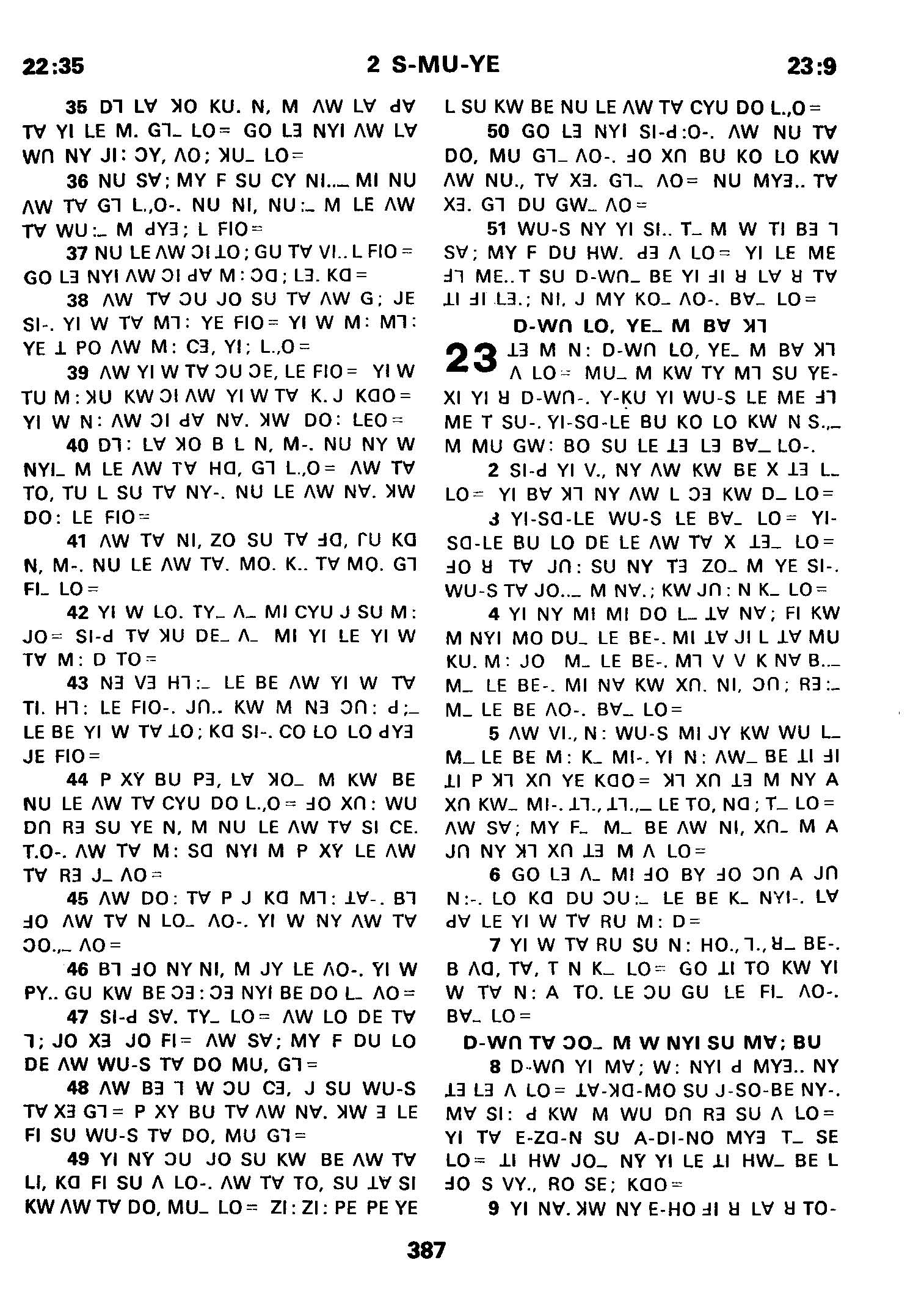 1980年傈僳语圣经全书 撒母耳记下 22 章 35 节到 23 章 9 节