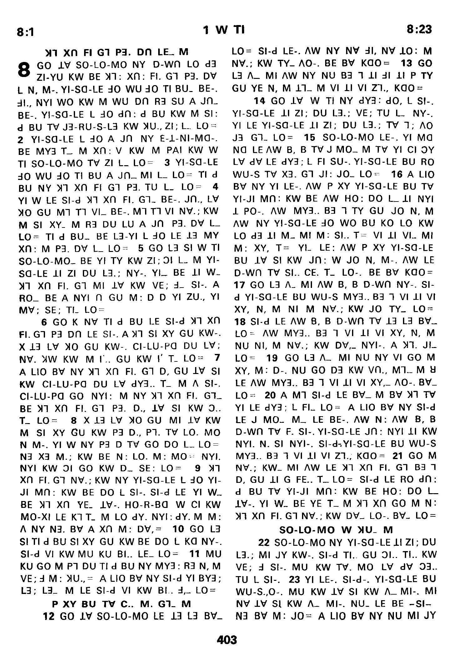1980年傈僳语圣经全书 列王纪上 8 章 1 节到 8 章 23 节
