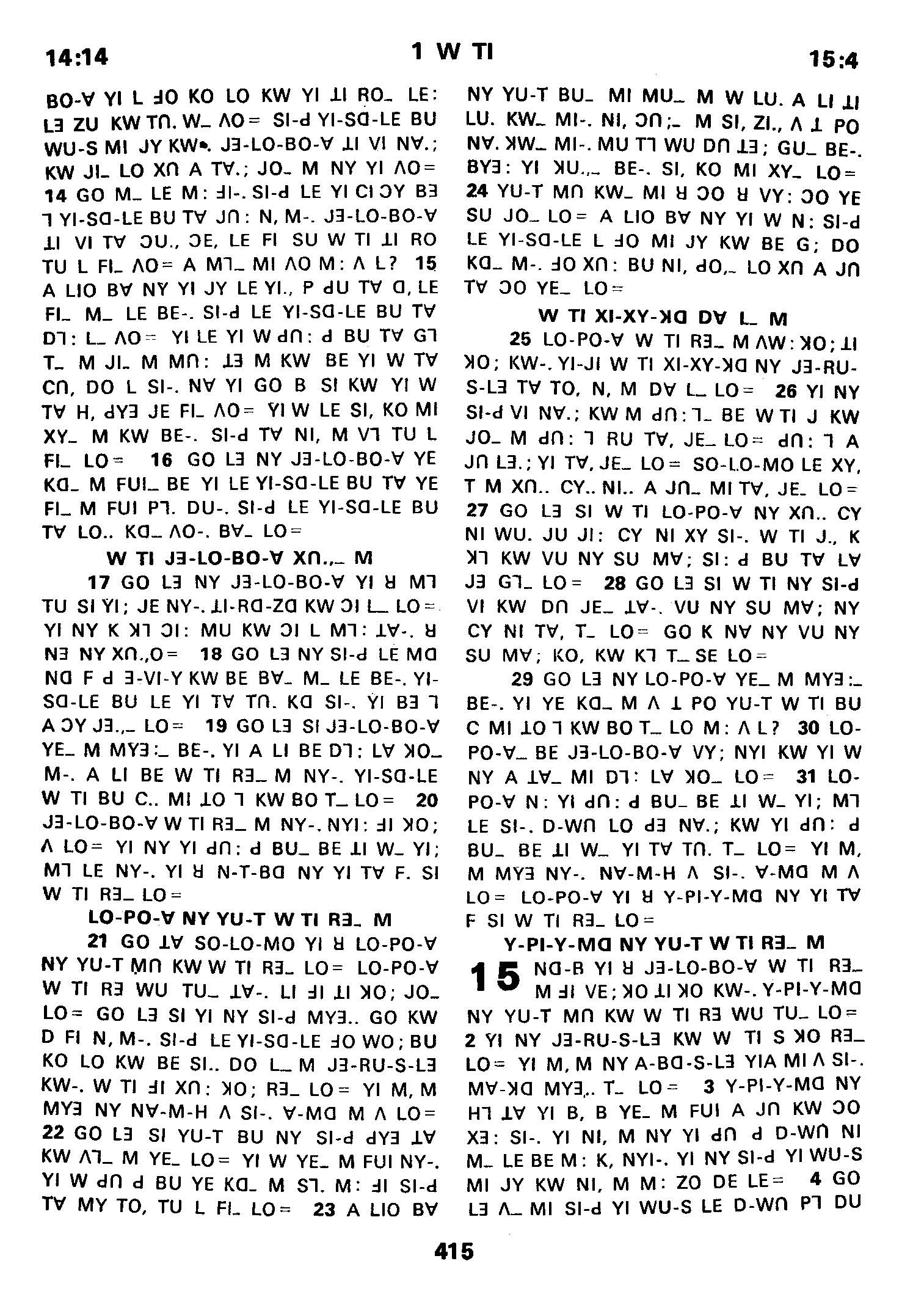 1980年傈僳语圣经全书 列王纪上 14 章 14 节到 15 章 4 节