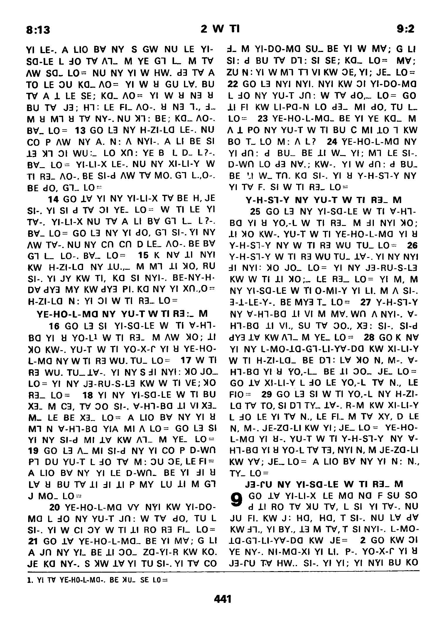 1980年傈僳语圣经全书 列王纪下 8 章 13 节到 9 章 2 节