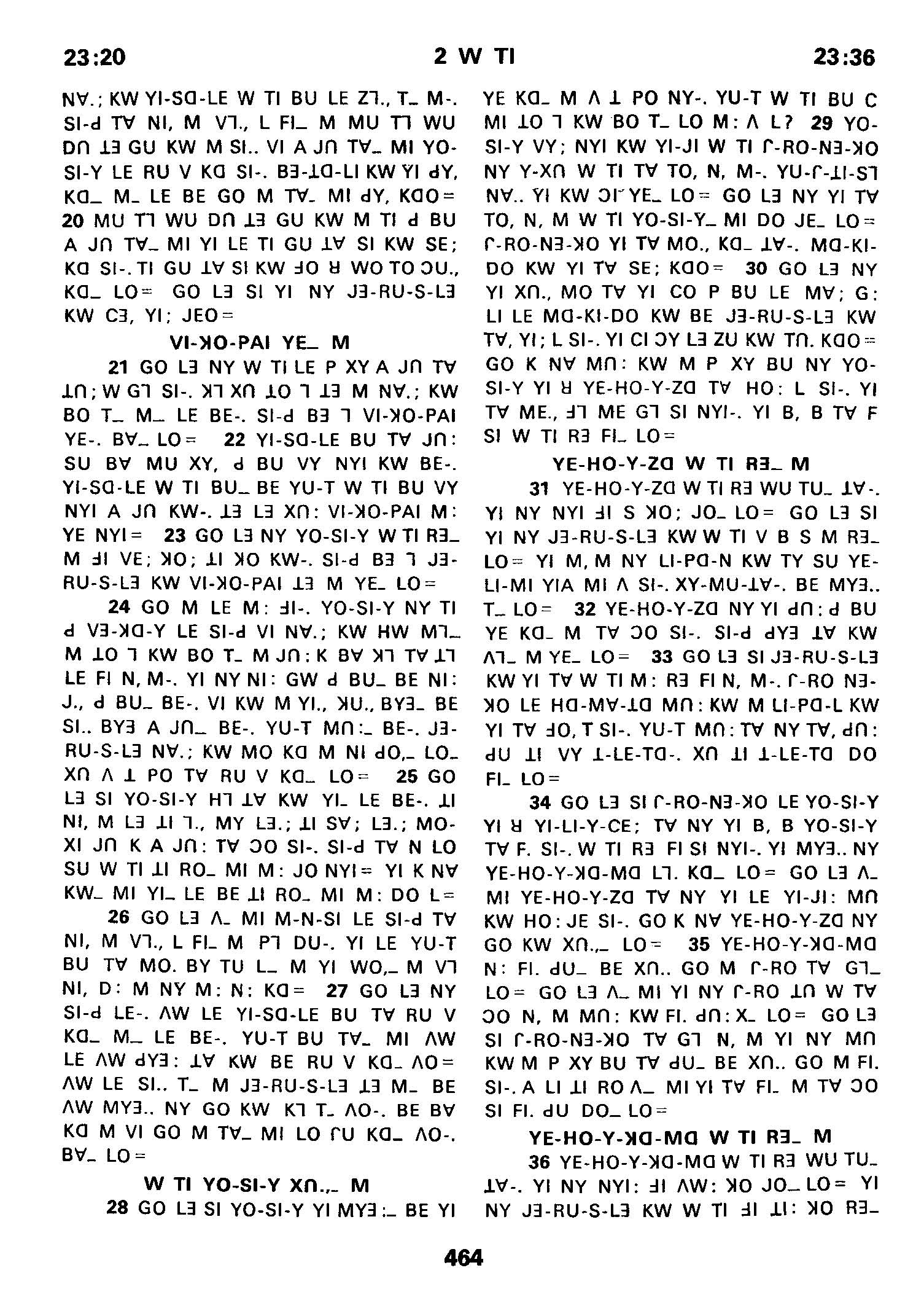 1980年傈僳语圣经全书 列王纪下 23 章 20 节到 23 章 36 节