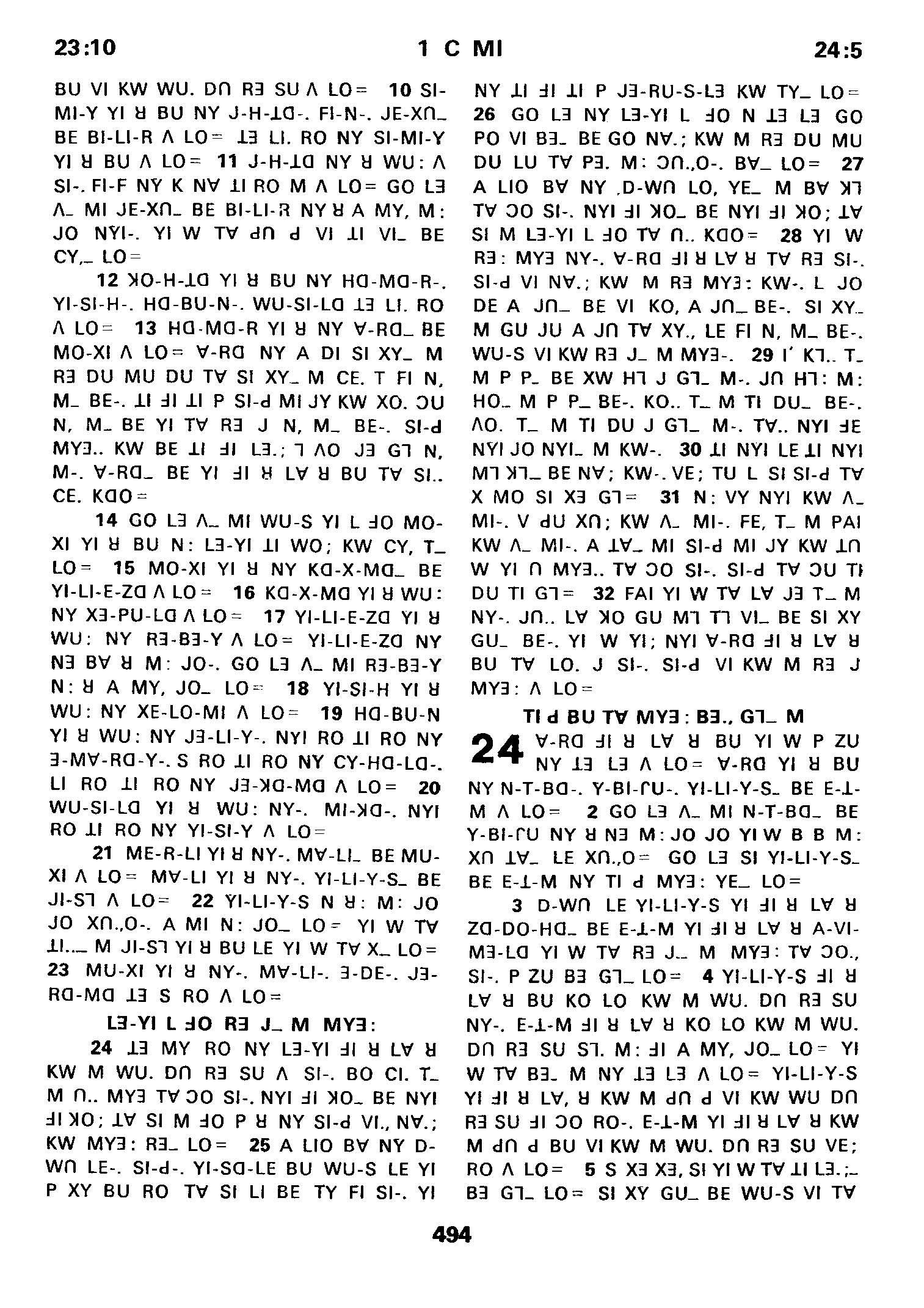 1980年傈僳语圣经全书 历代志上 23 章 10 节到 24 章 5 节