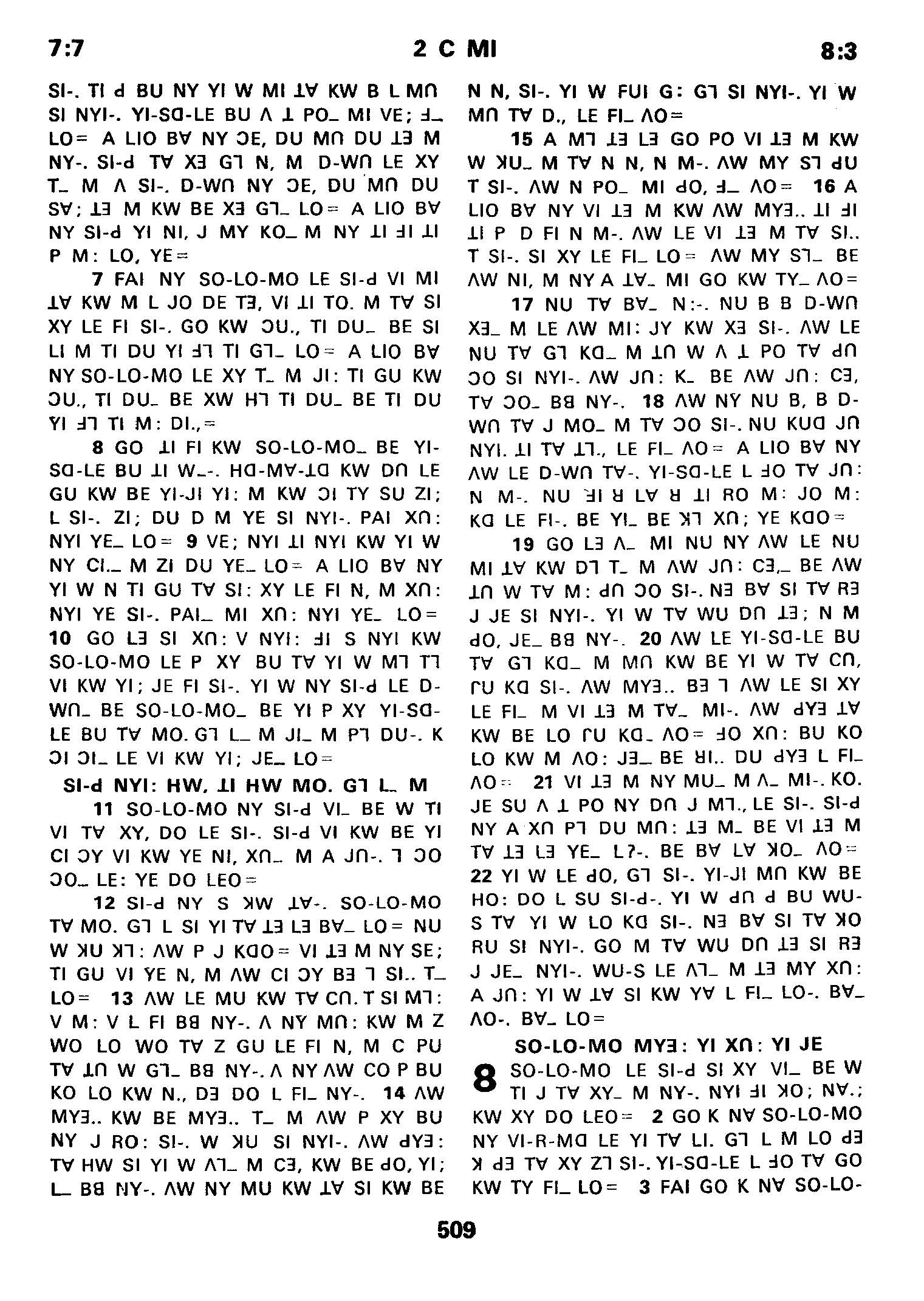 1980年傈僳语圣经全书 历代志下 7 章 7 节到 8 章 3 节