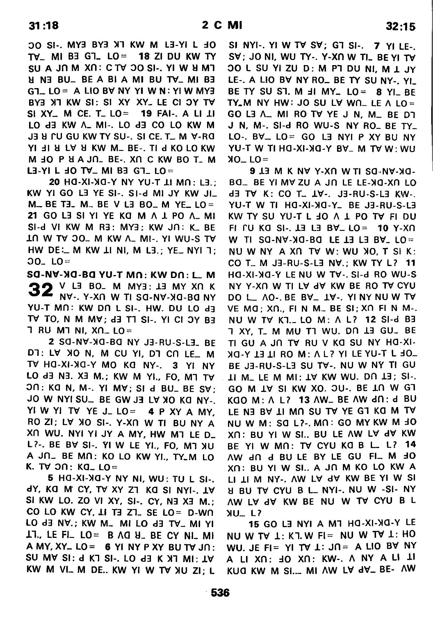 1980年傈僳语圣经全书 历代志下 31 章 18 节到 32 章 15 节