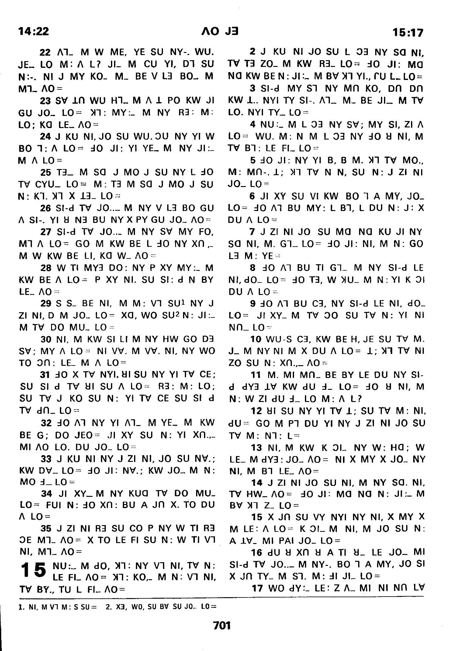 1980年傈僳语圣经全书 箴言 14 章 22 节到 15 章 17 节