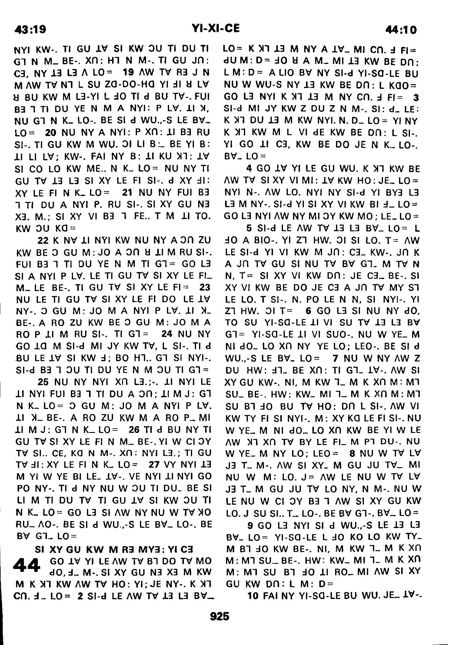 1980年傈僳语圣经全书 以西结书 43 章 19 节到 44 章 10 节