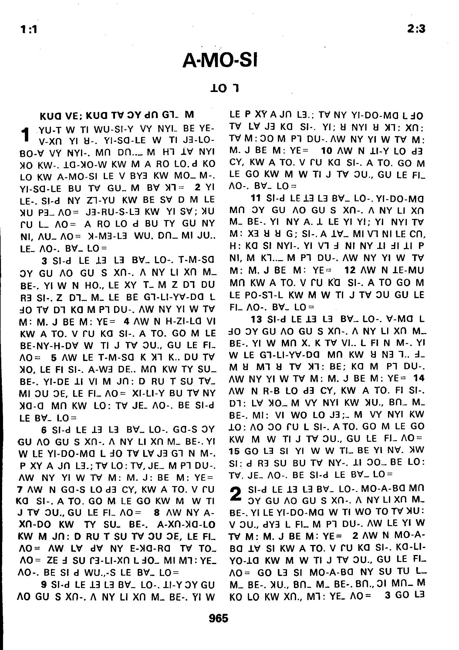 1980年傈僳语圣经全书 阿摩司书 1 章 1 节到 2 章 3 节