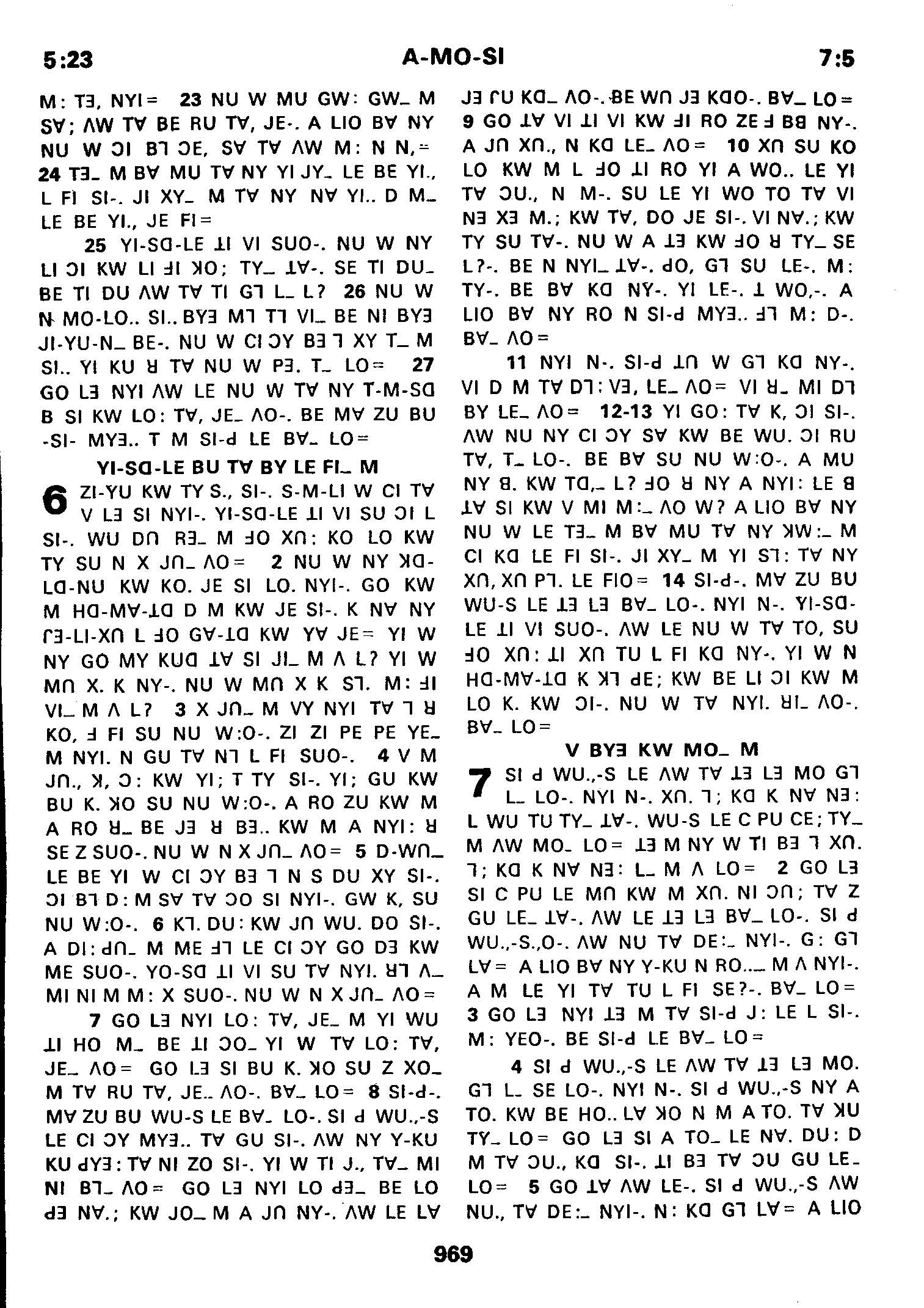 1980年傈僳语圣经全书 阿摩司书 5 章 23 节到 7 章 5 节