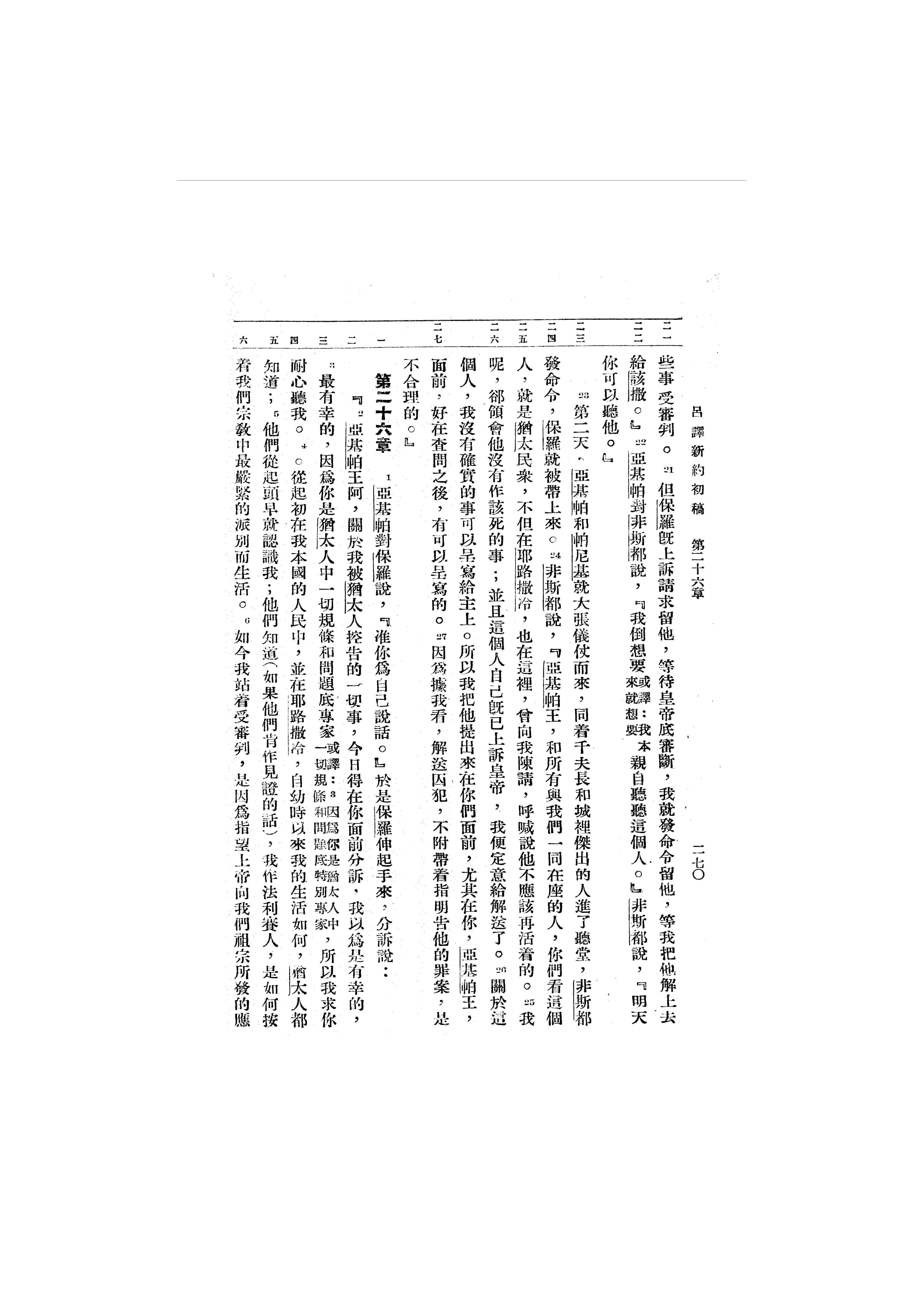 1946年吕振中译新约初稿 使徒行传 25 章 21 节到 26 章 6 节