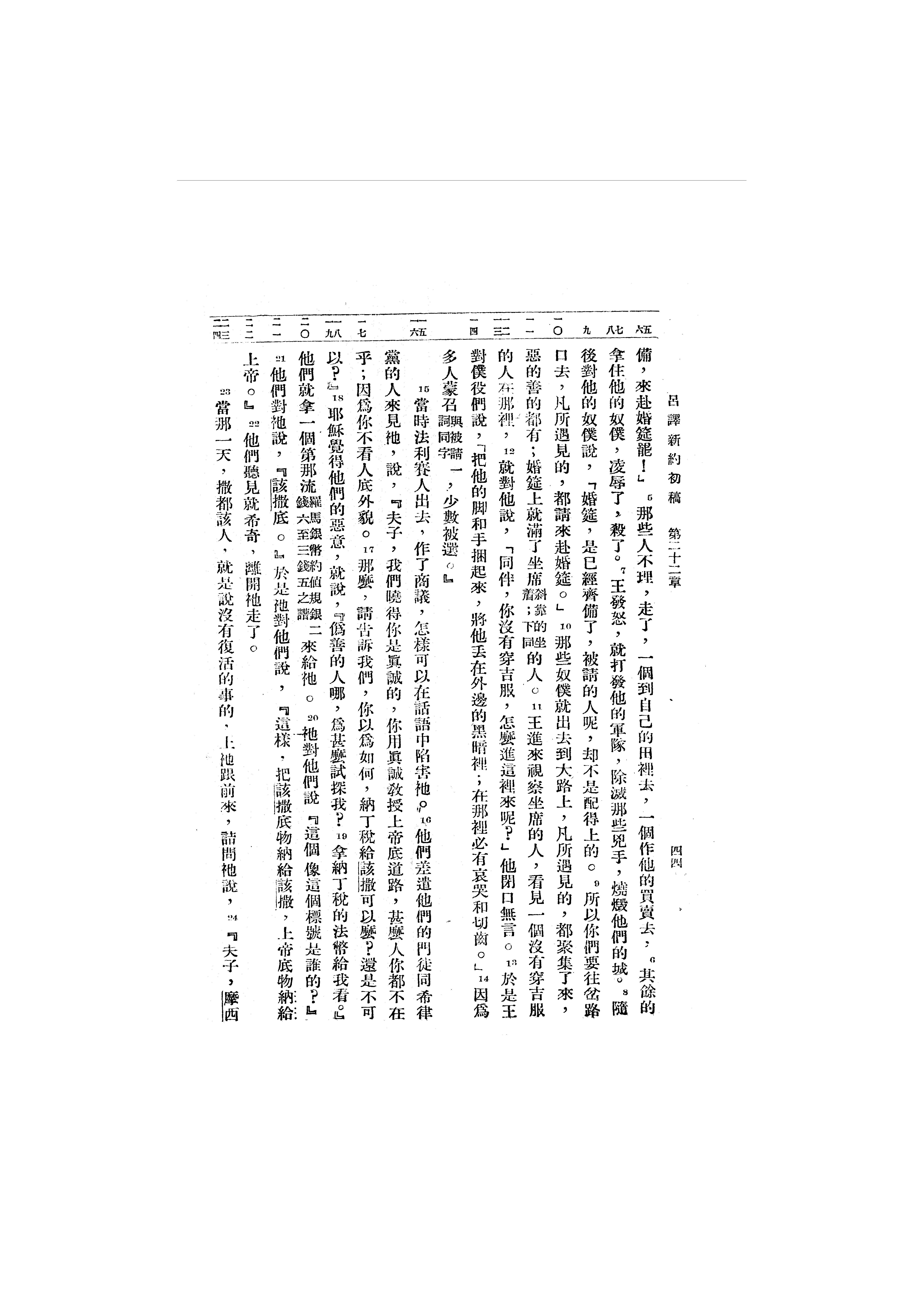 1946年吕振中译新约初稿 马太福音 22 章 5 节到 22 章 24 节