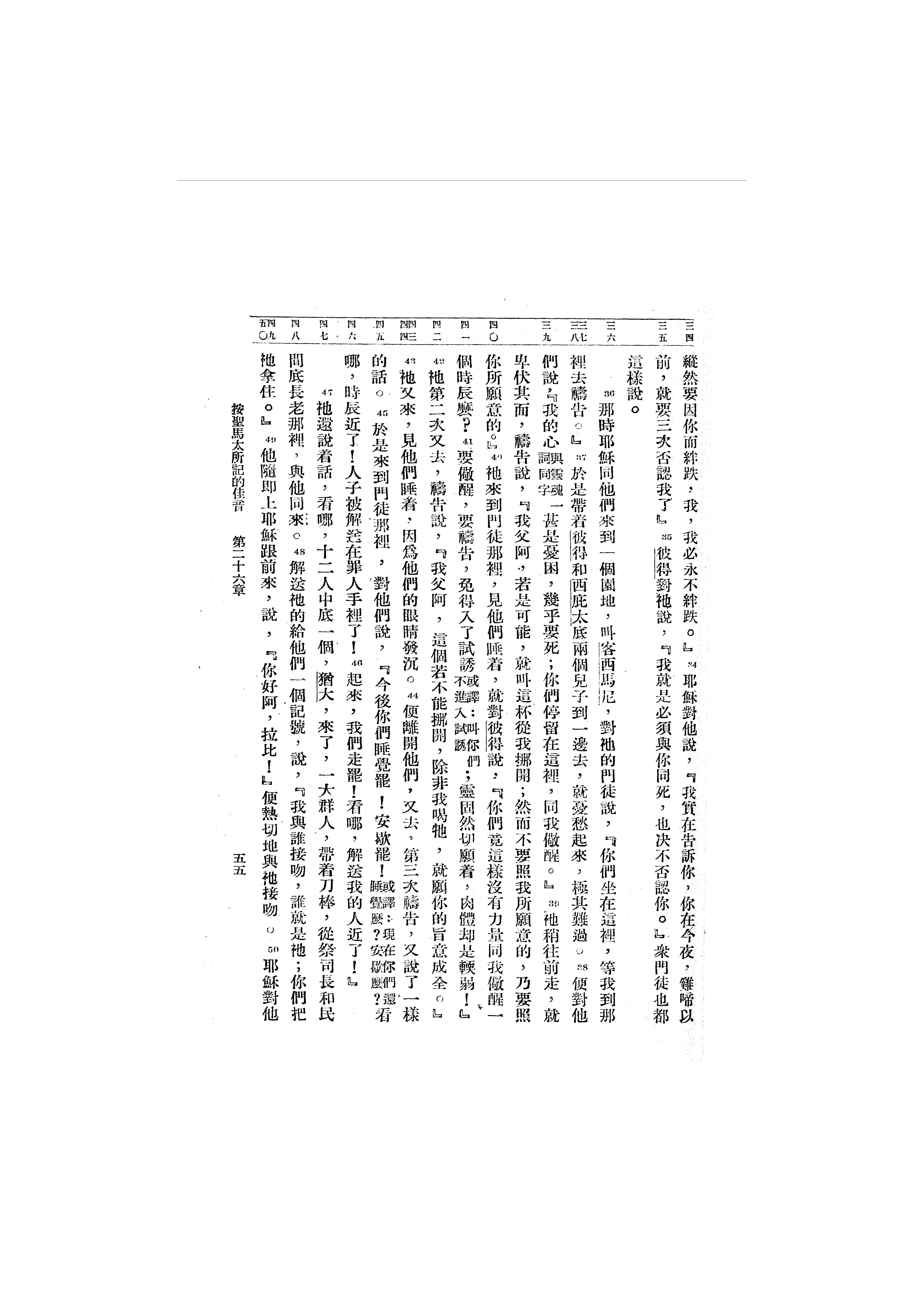 1946年吕振中译新约初稿 马太福音 26 章 34 节到 26 章 50 节