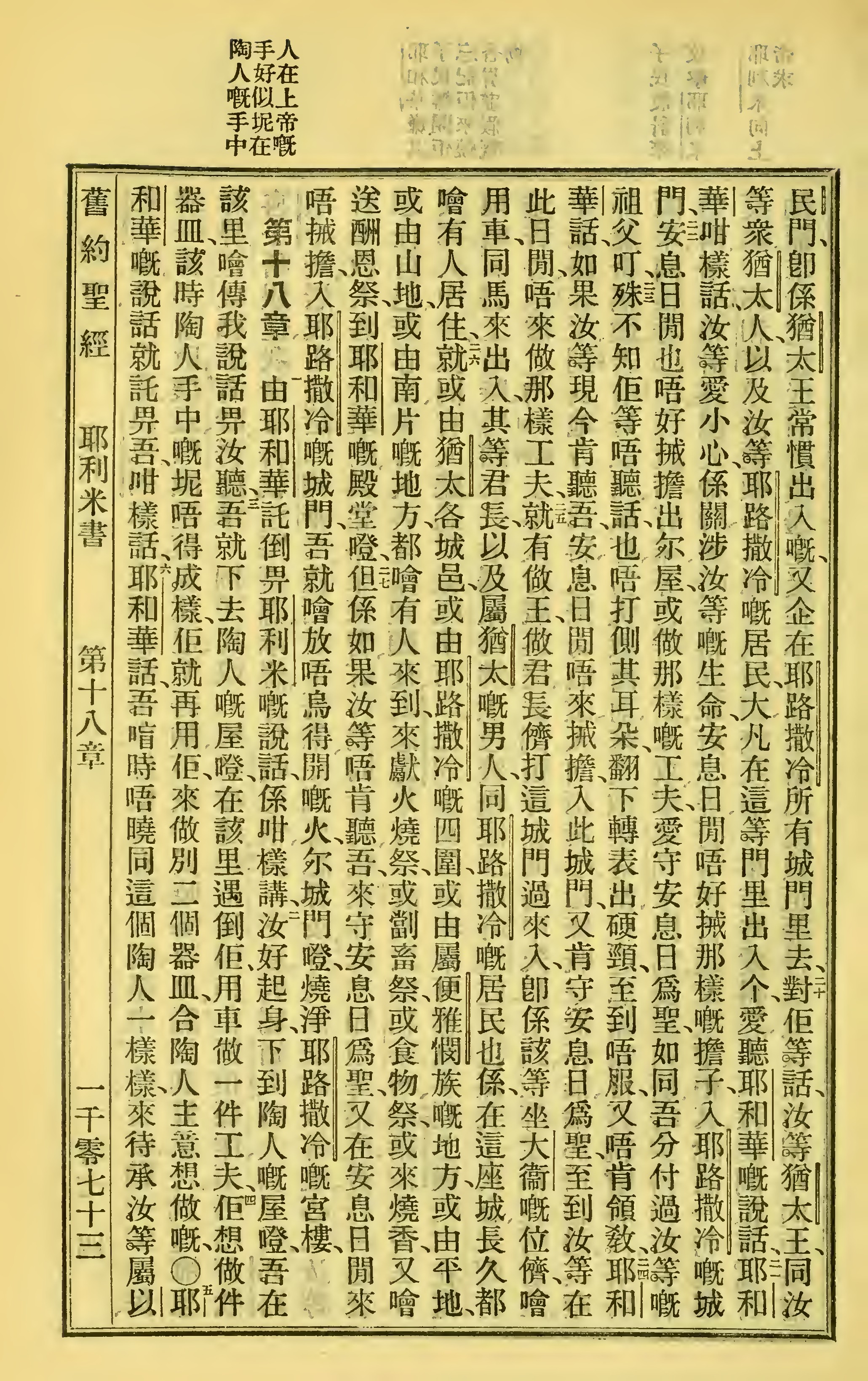 1923年圣经全书 耶利米书 17 章 20 节到 18 章 6 节