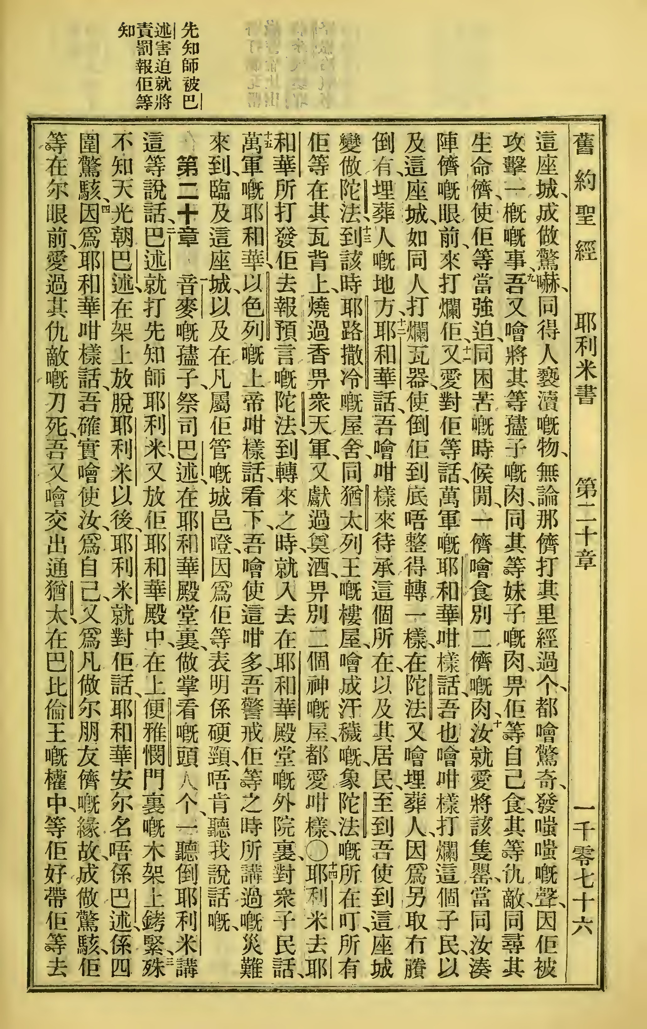1923年圣经全书 耶利米书 19 章 8 节到 20 章 4 节