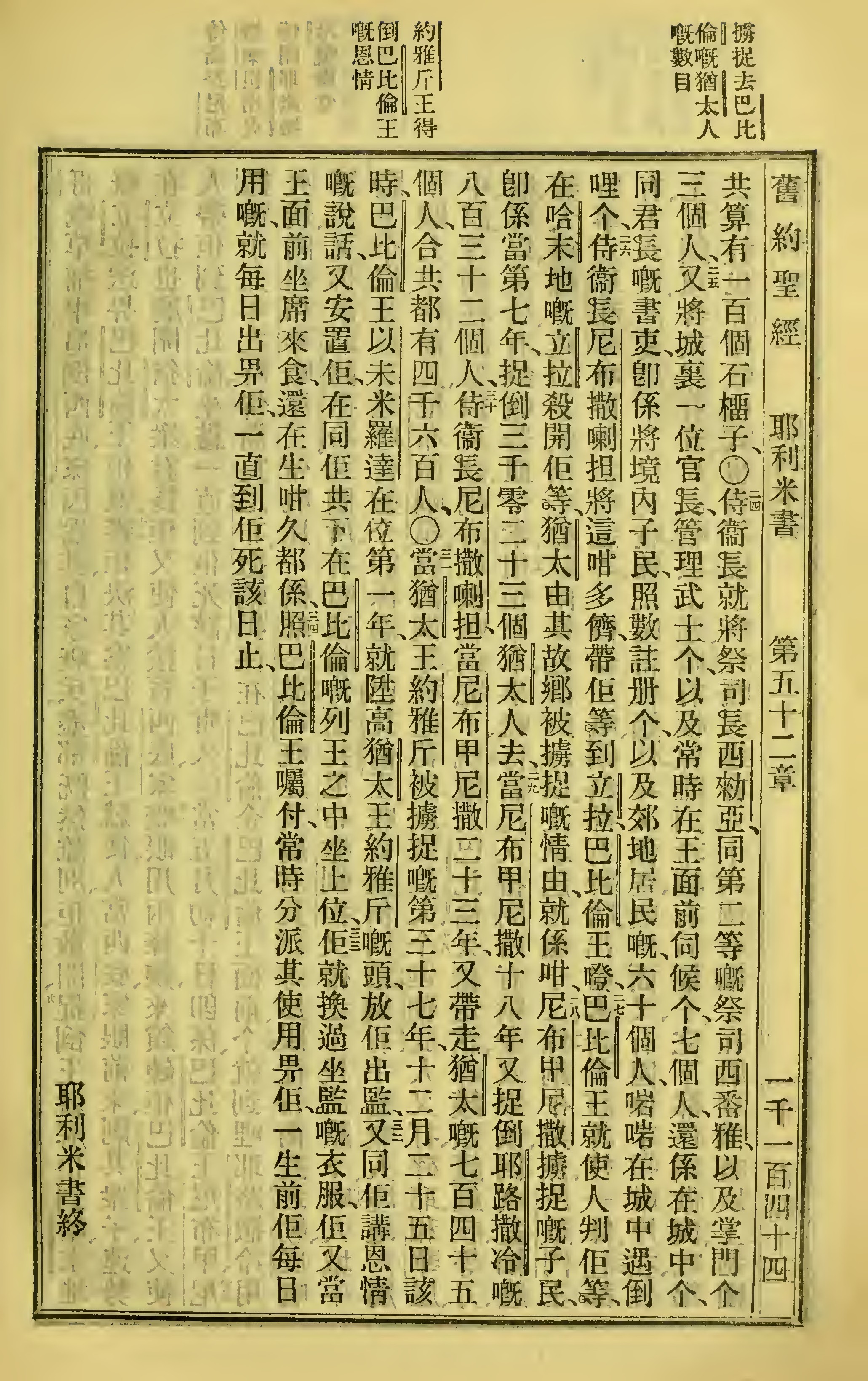 1923年圣经全书 耶利米书 52 章 24 节到 52 章 34 节