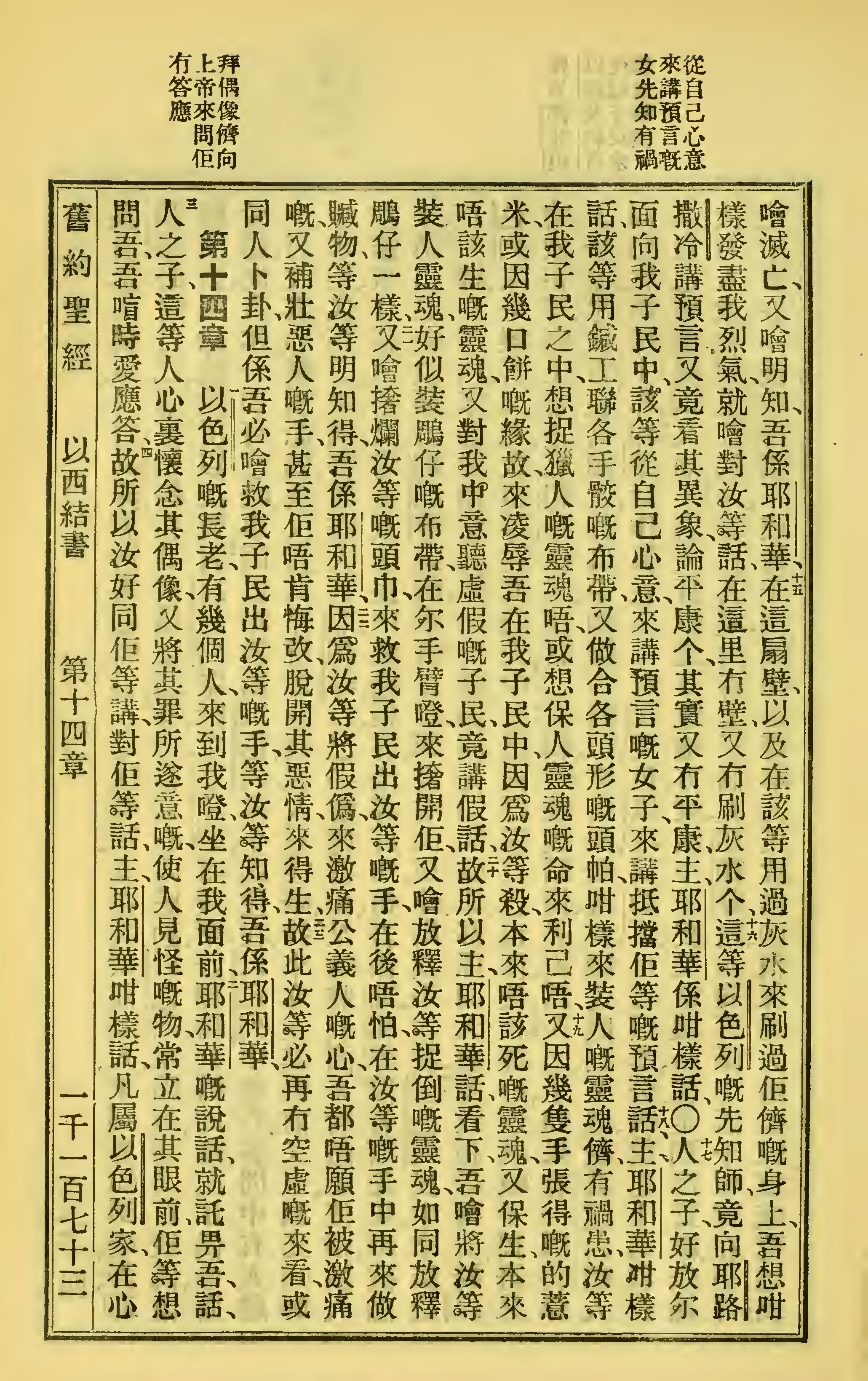 1923年圣经全书 以西结书 13 章 15 节到 14 章 4 节