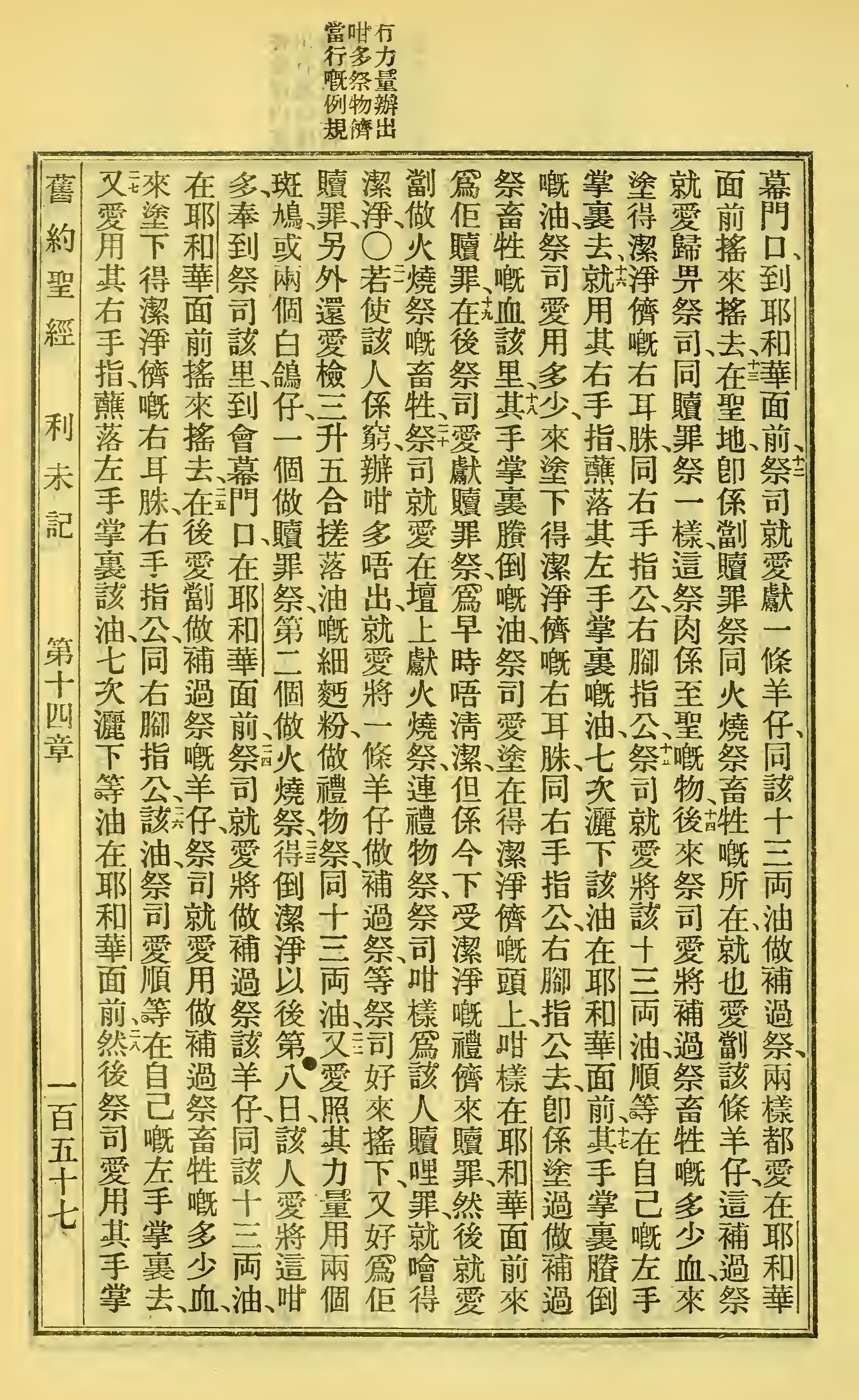 1923年圣经全书 利未记 14 章 12 节到 14 章 28 节