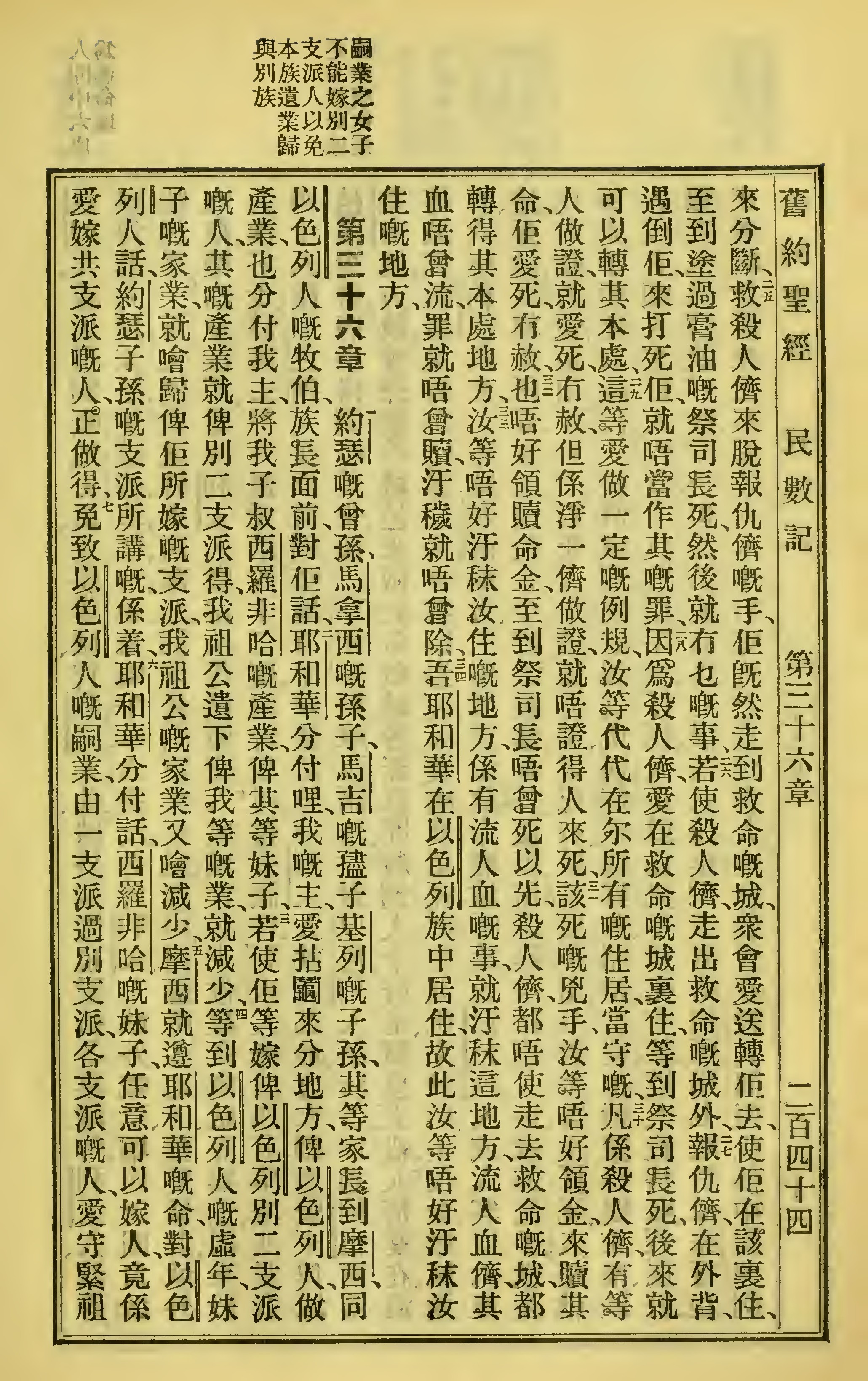 1923年圣经全书 民数记 35 章 25 节到 36 章 7 节