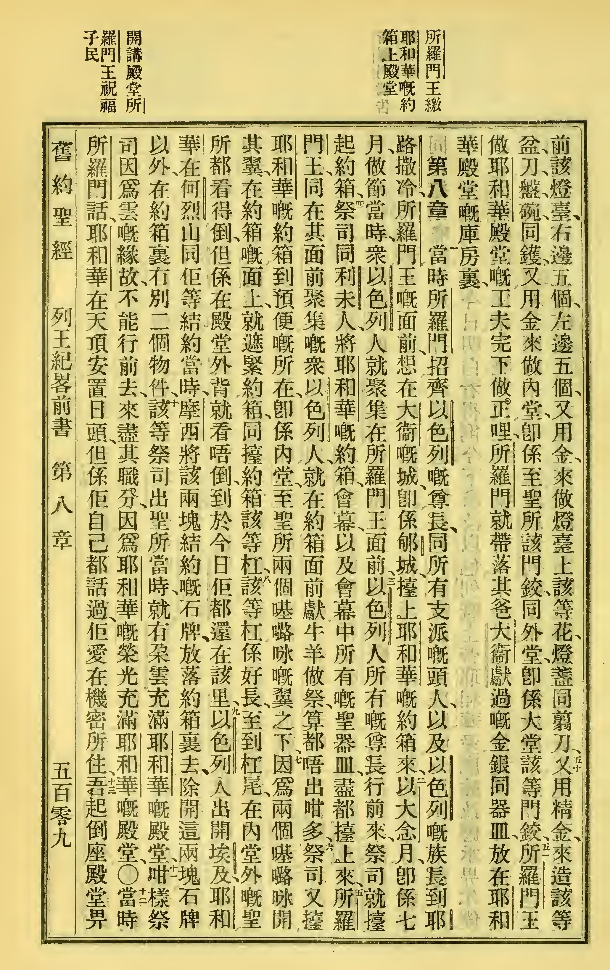 1923年圣经全书 列王纪上 7 章 49 节到 8 章 13 节