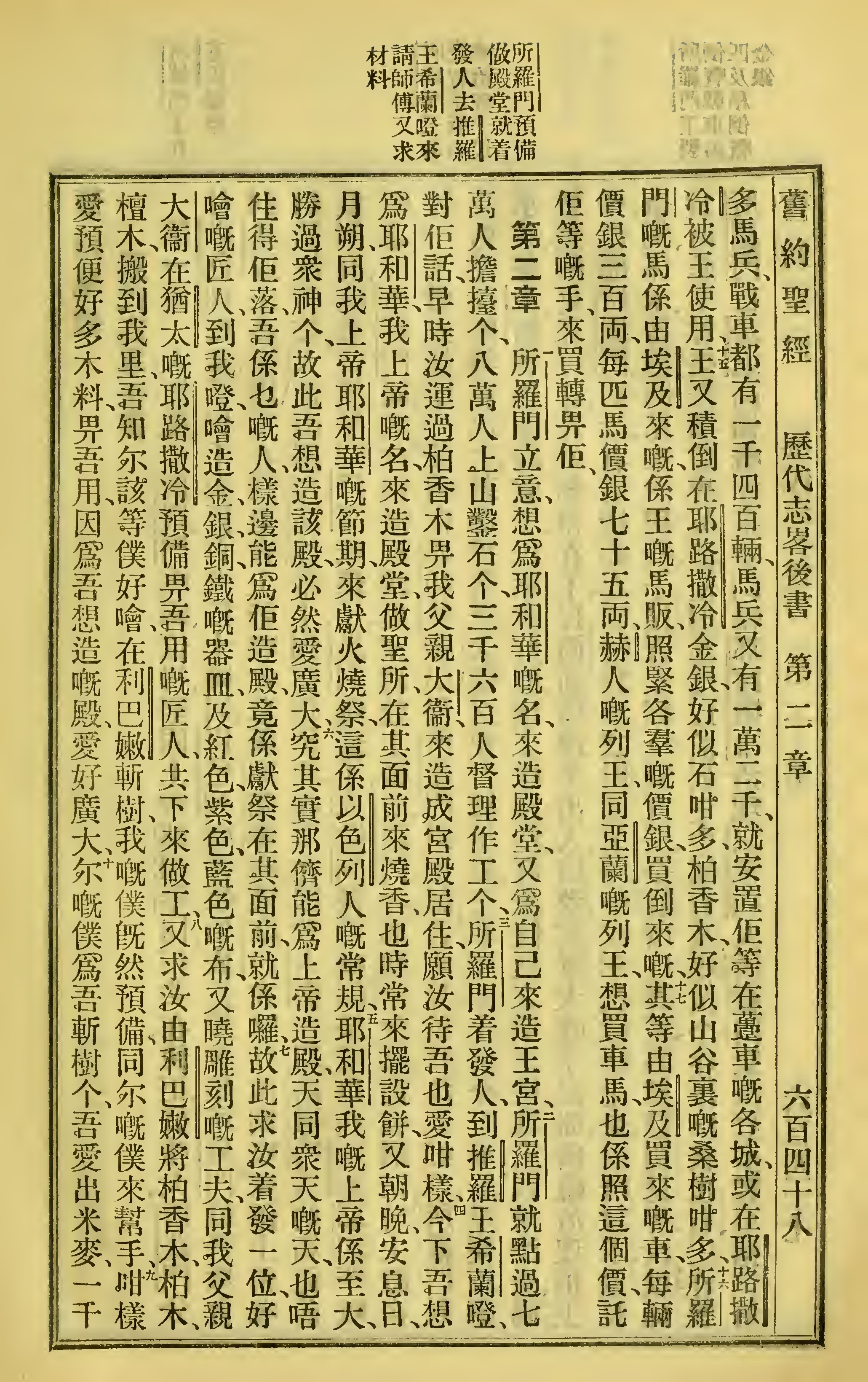 1923年圣经全书 历代志下 1 章 14 节到 2 章 10 节