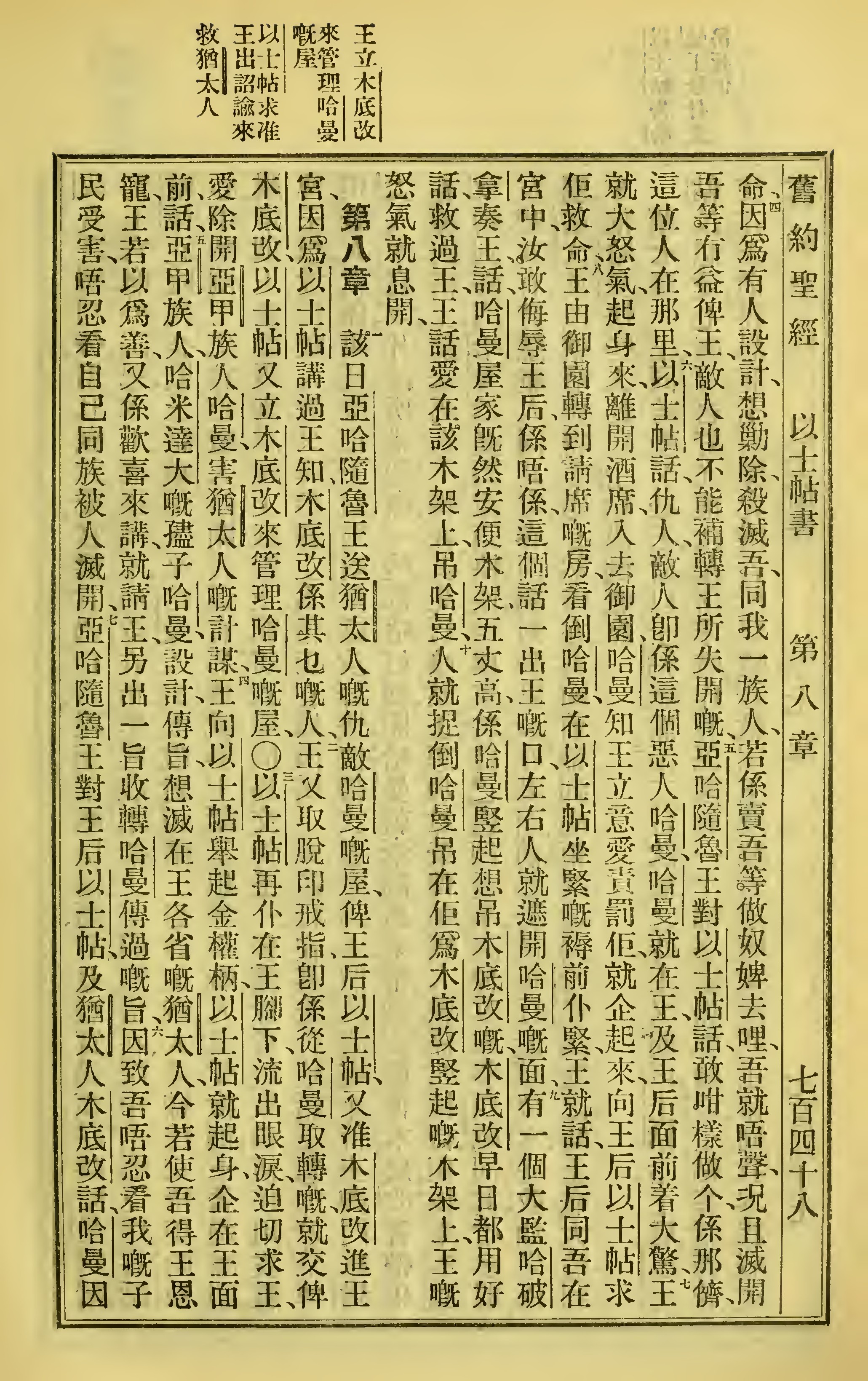 1923年圣经全书 以斯帖记 7 章 4 节到 8 章 7 节