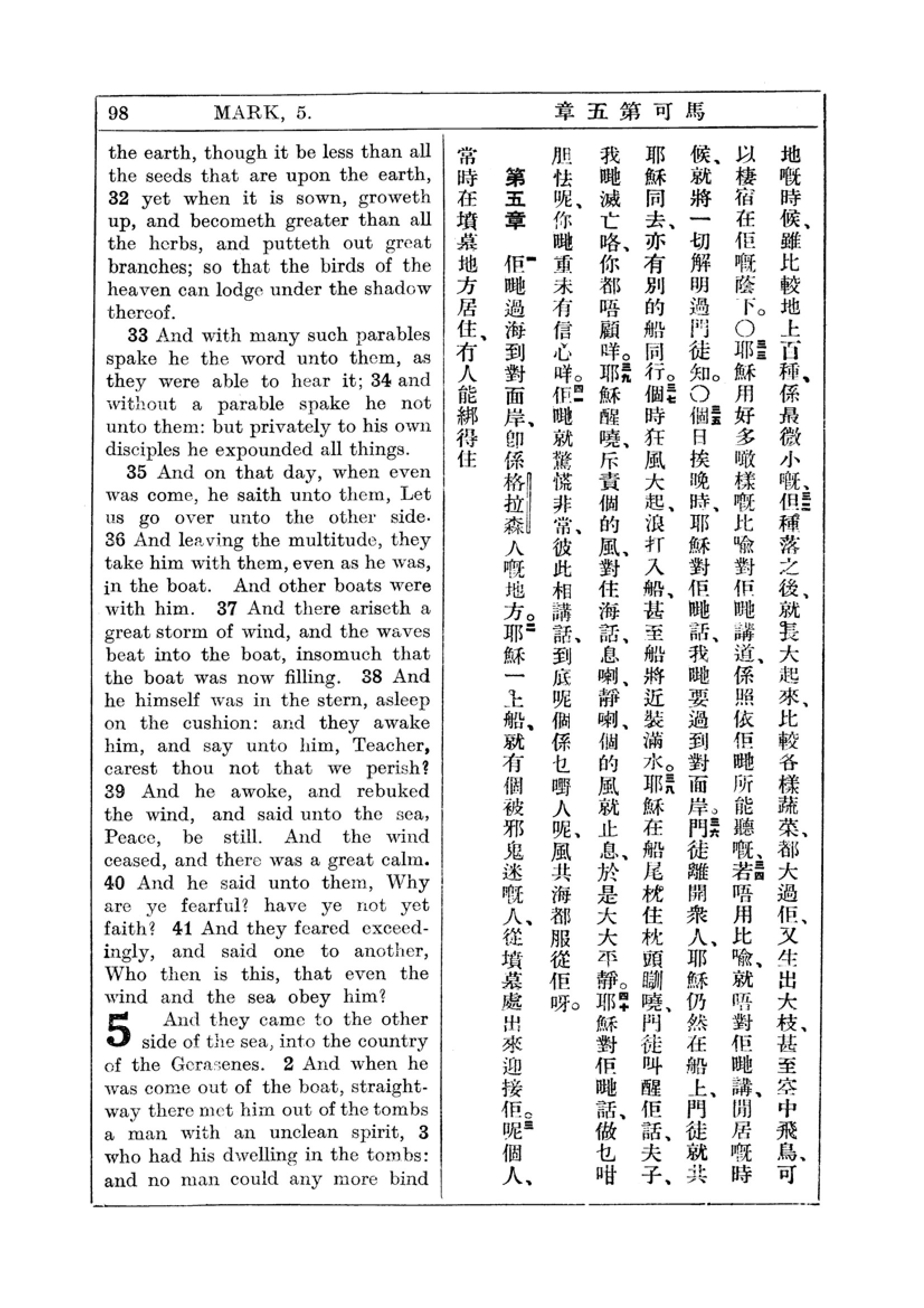 1927年新约全书(中英对照) 马可福音 4 章 32 节到 5 章 3 节