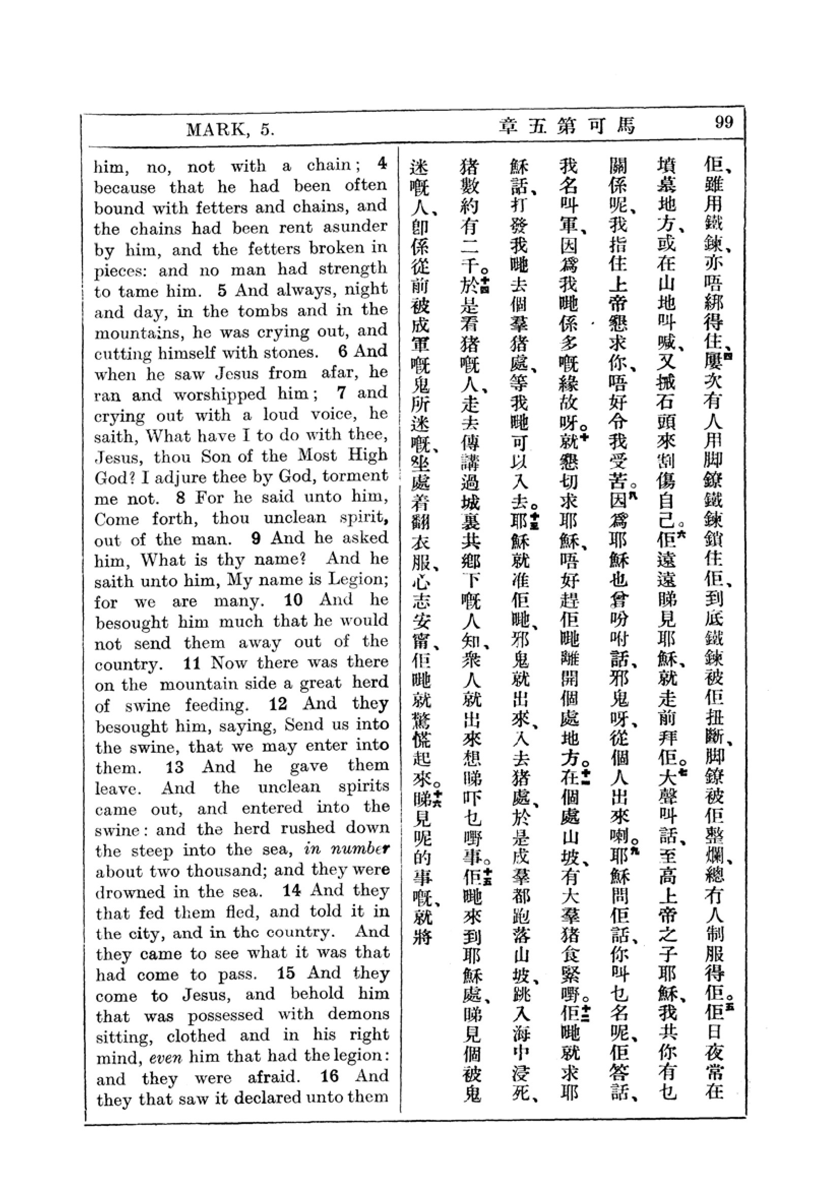 1927年新约全书(中英对照) 马可福音 5 章 4 节到 5 章 16 节