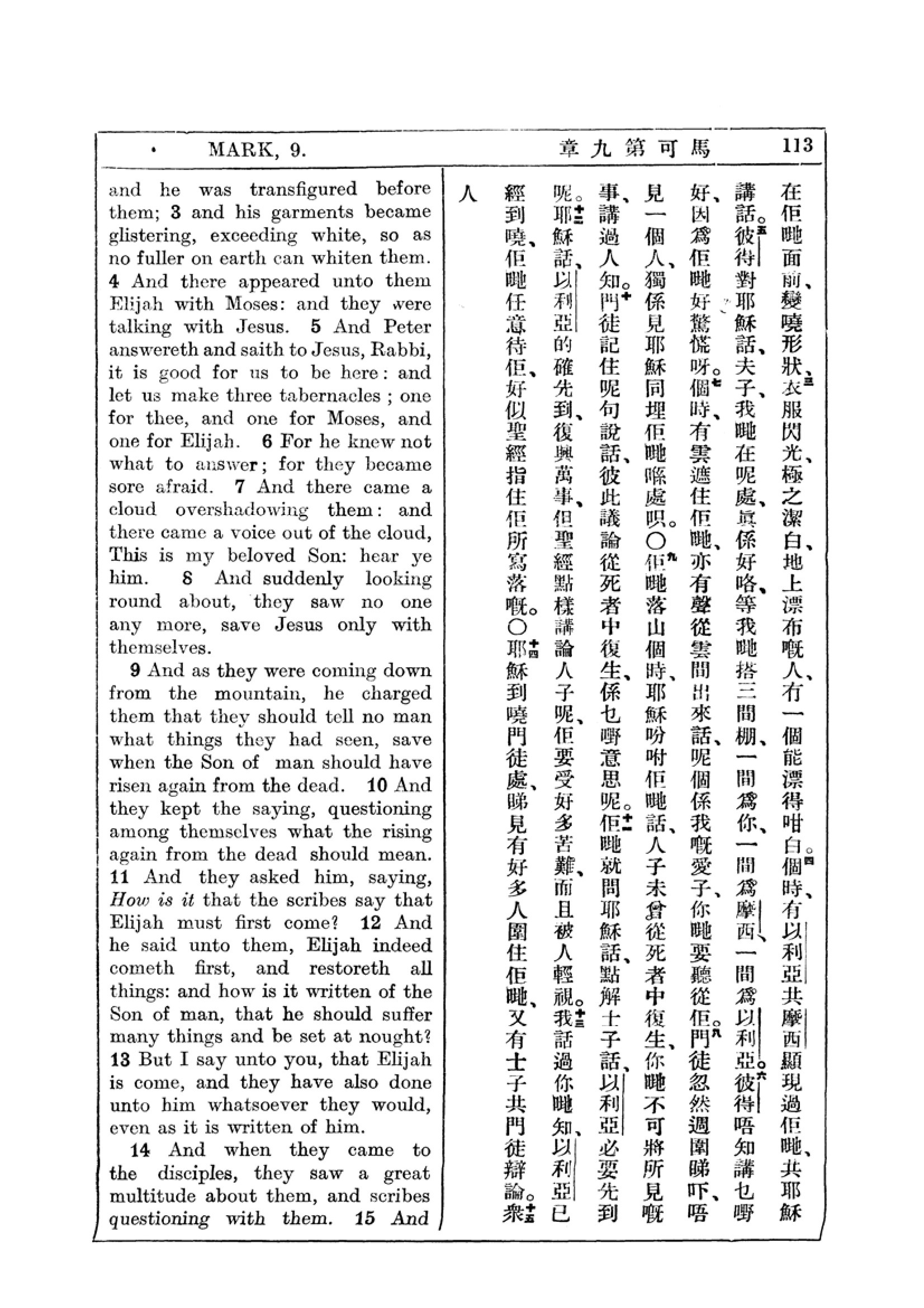 1927年新约全书(中英对照) 马可福音 9 章 3 节到 9 章 14 节