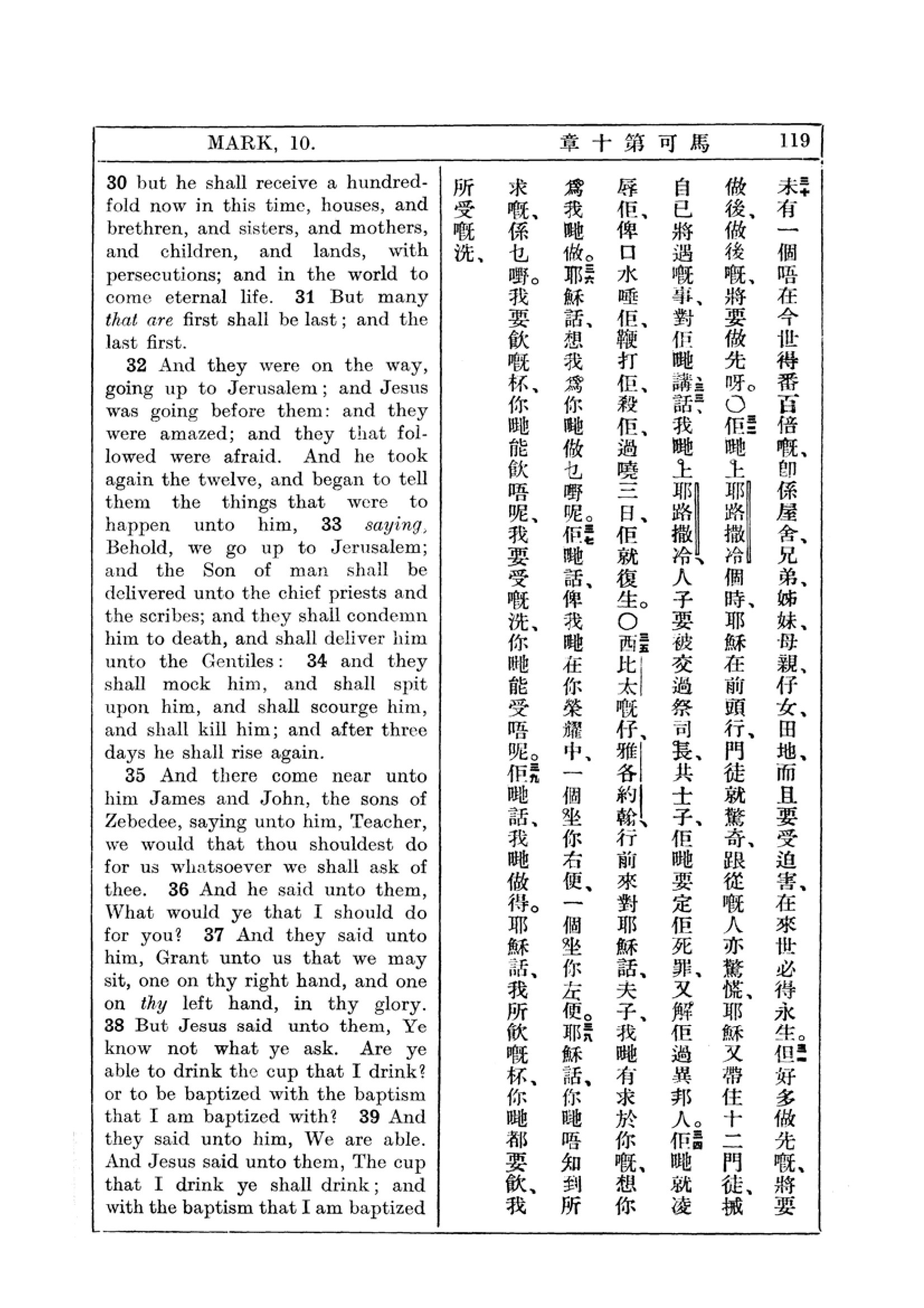 1927年新约全书(中英对照) 马可福音 10 章 30 节到 10 章 39 节