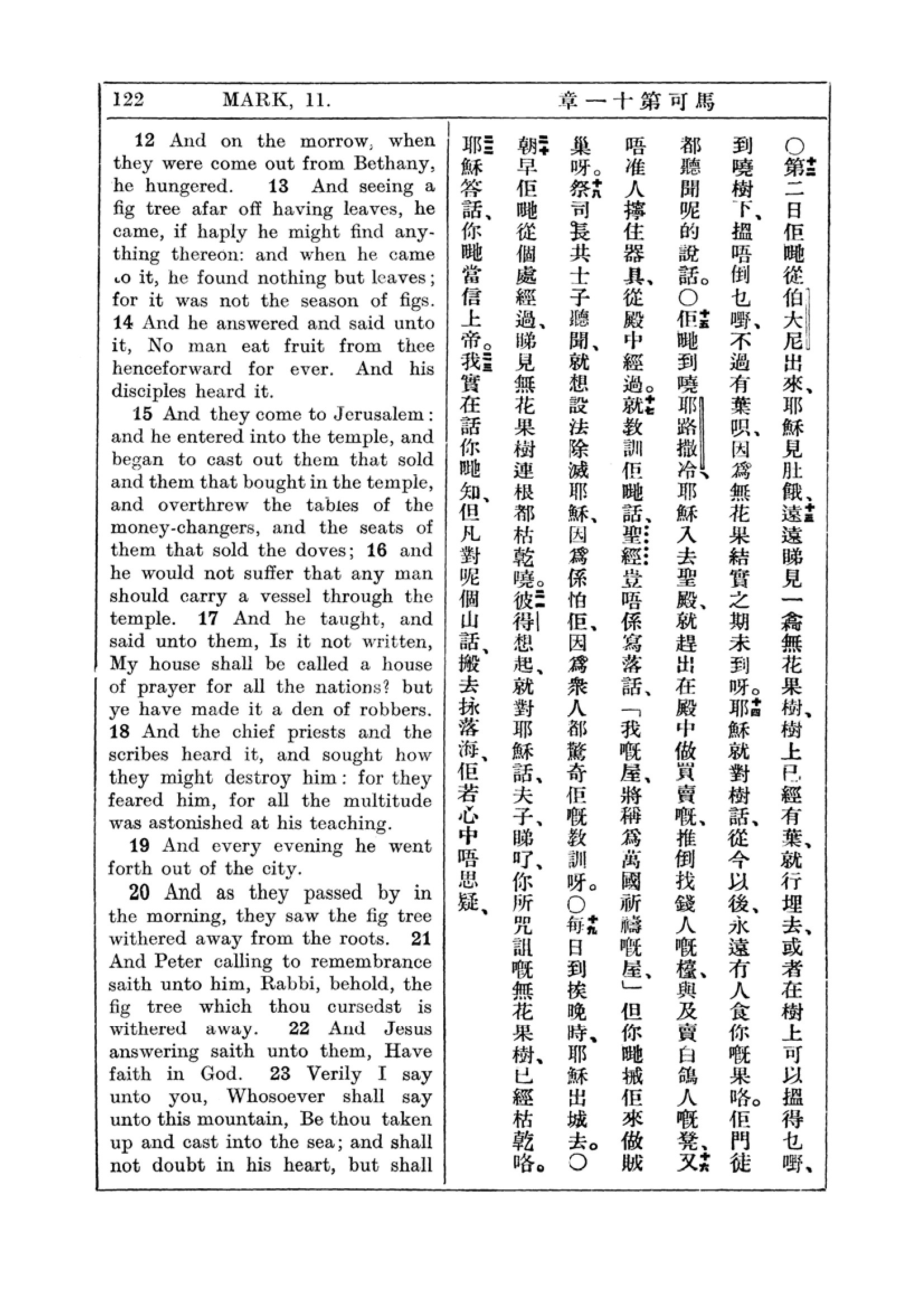 1927年新约全书(中英对照) 马可福音 11 章 12 节到 11 章 23 节