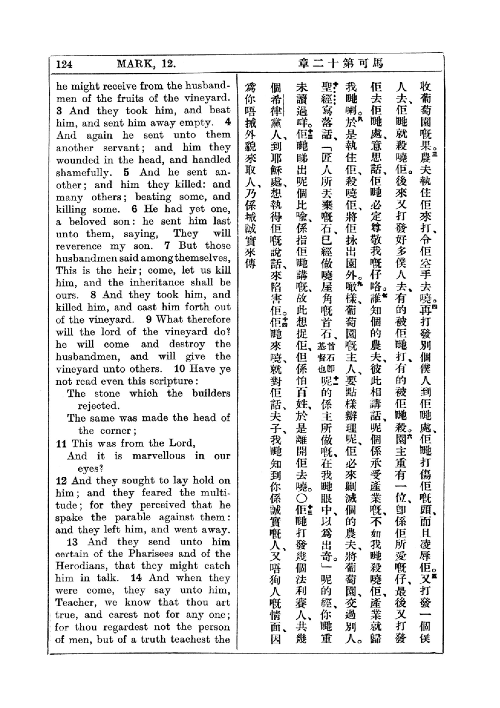 1927年新约全书(中英对照) 马可福音 12 章 3 节到 12 章 14 节