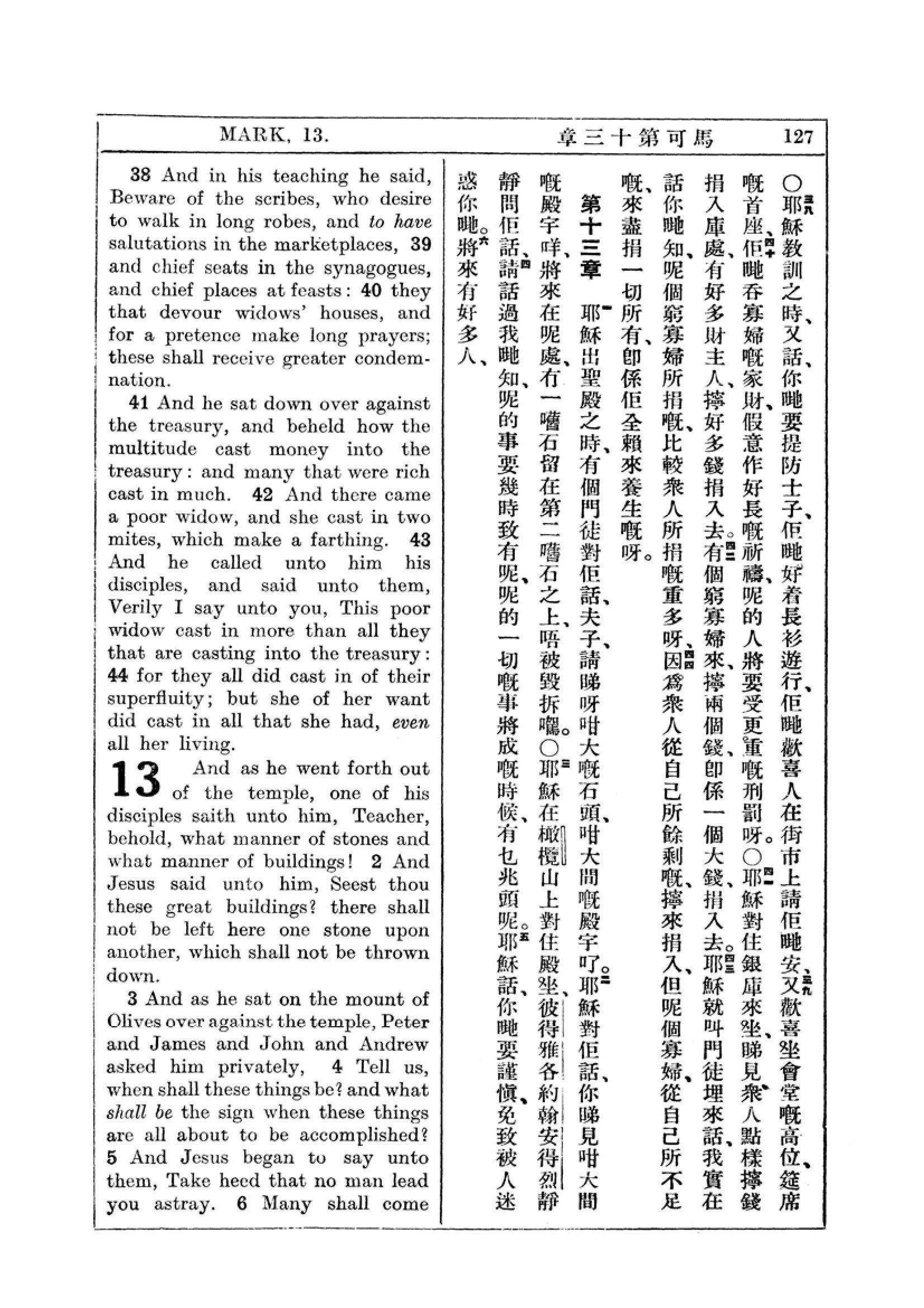 1927年新约全书(中英对照) 马可福音 12 章 38 节到 13 章 5 节