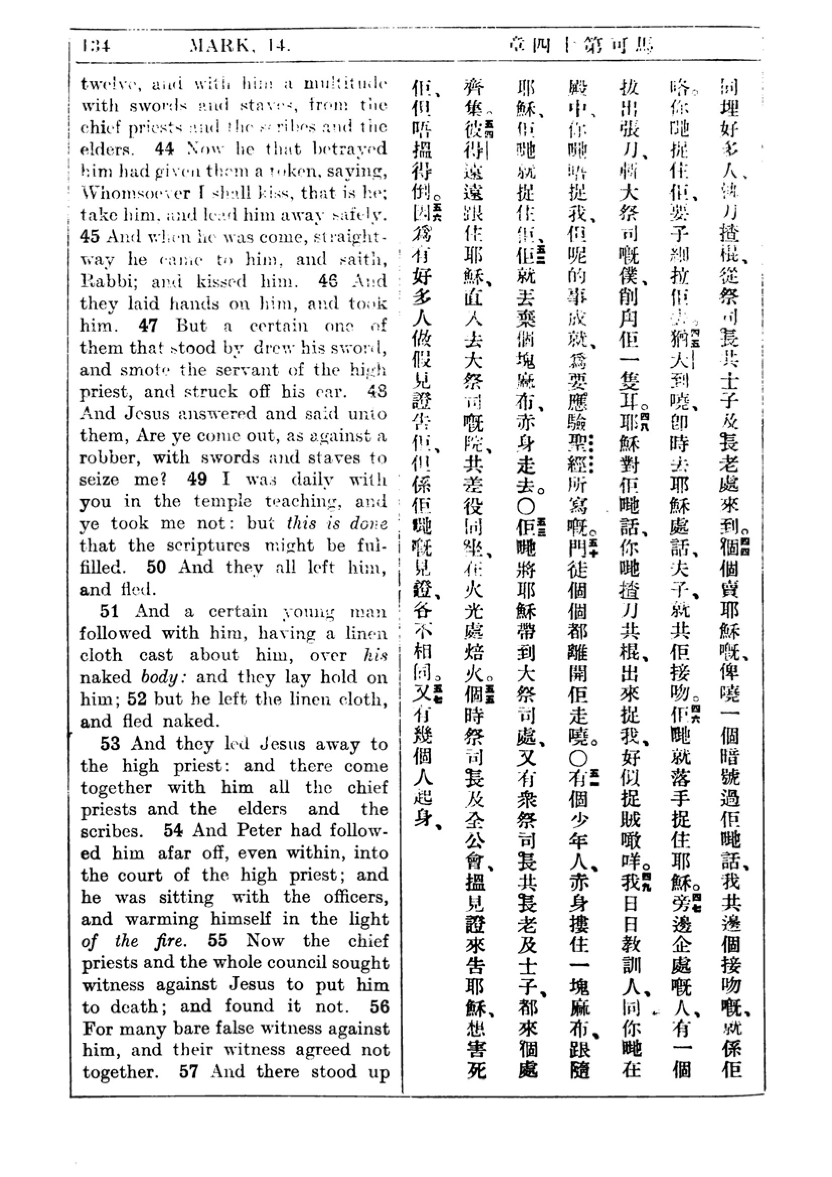 1927年新约全书(中英对照) 马可福音 14 章 44 节到 14 章 57 节
