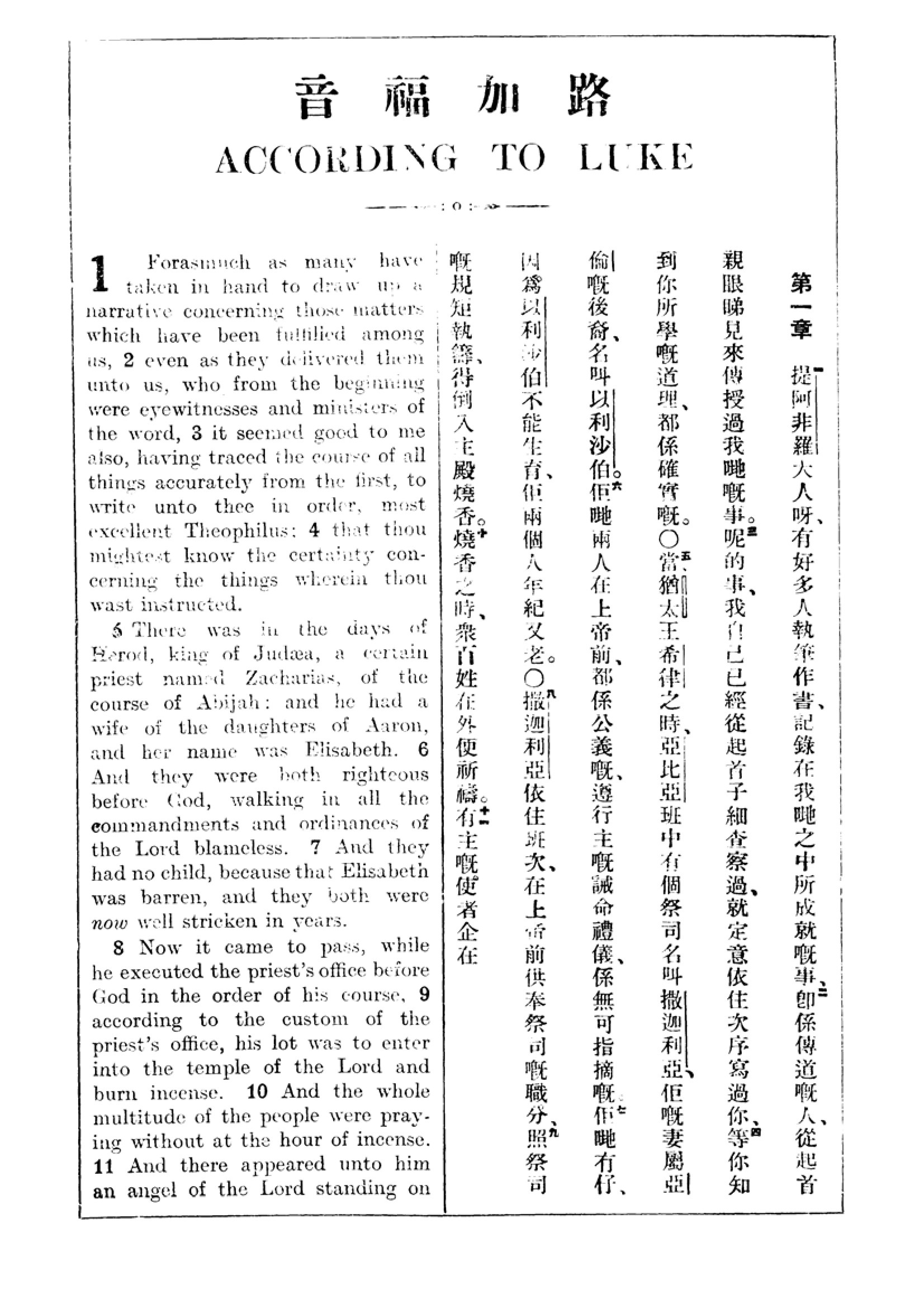 1927年新约全书(中英对照) 路加福音 1 章 1 节到 1 章 11 节