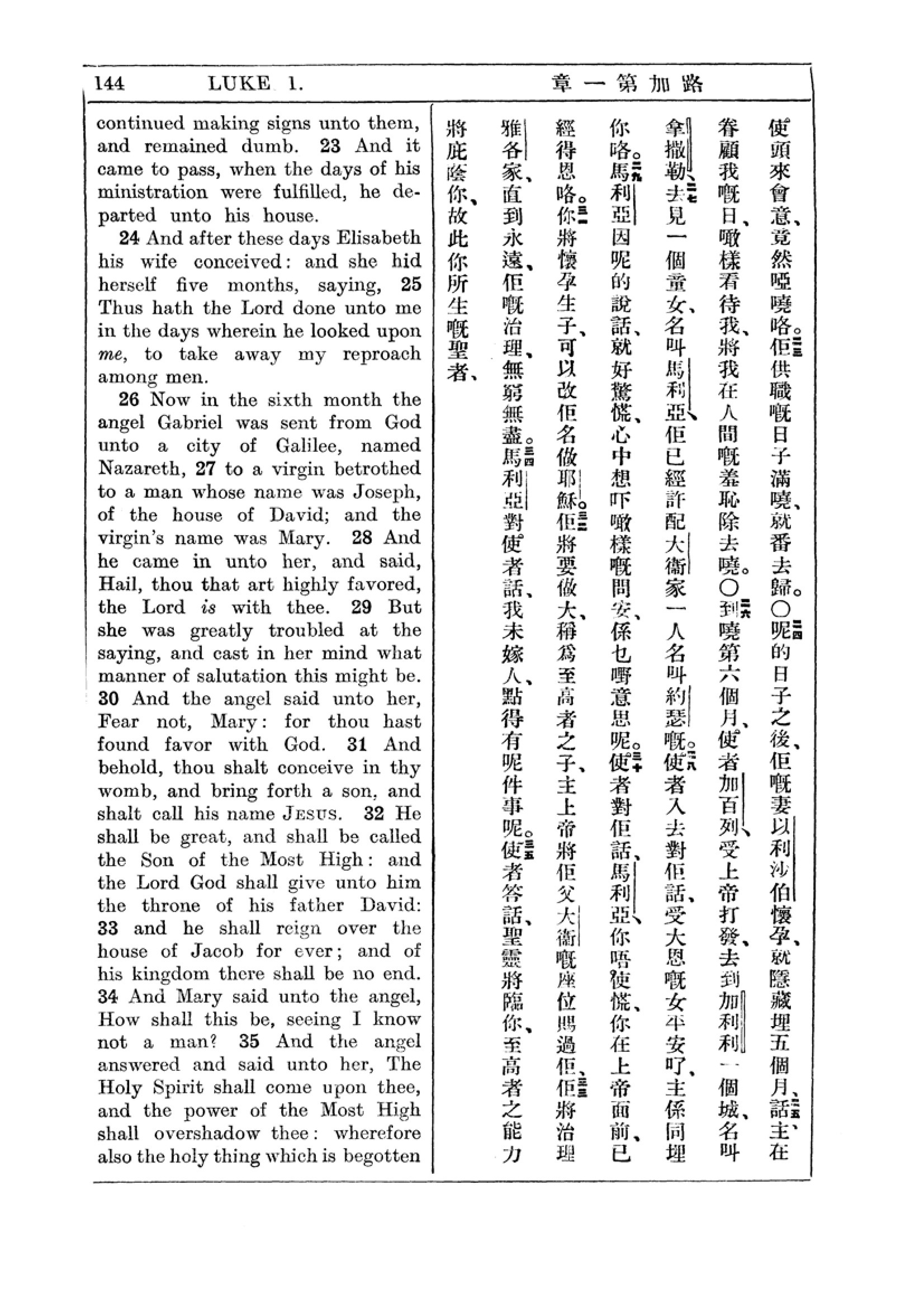 1927年新约全书(中英对照) 路加福音 1 章 23 节到 1 章 35 节