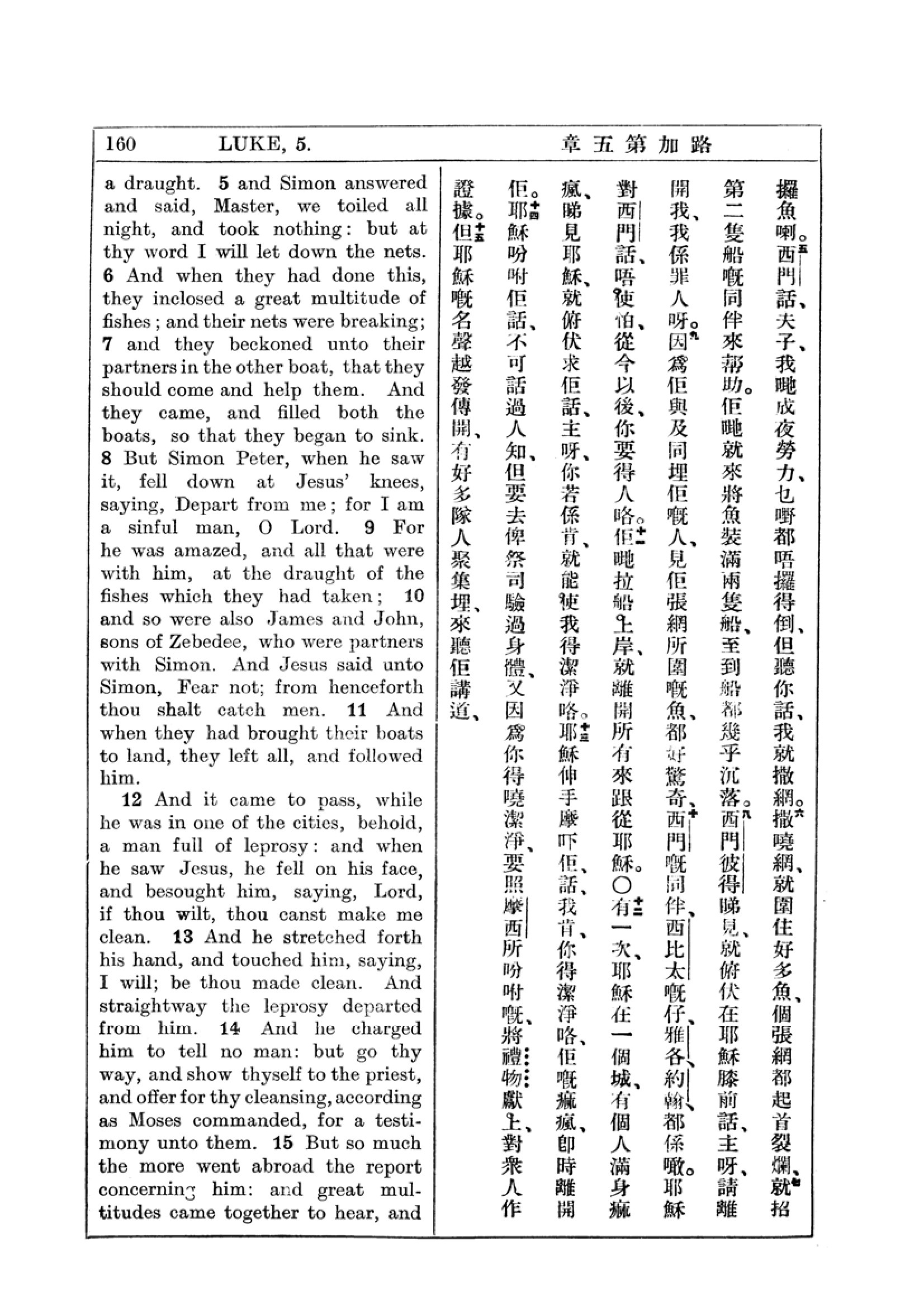 1927年新约全书(中英对照) 路加福音 5 章 5 节到 5 章 15 节